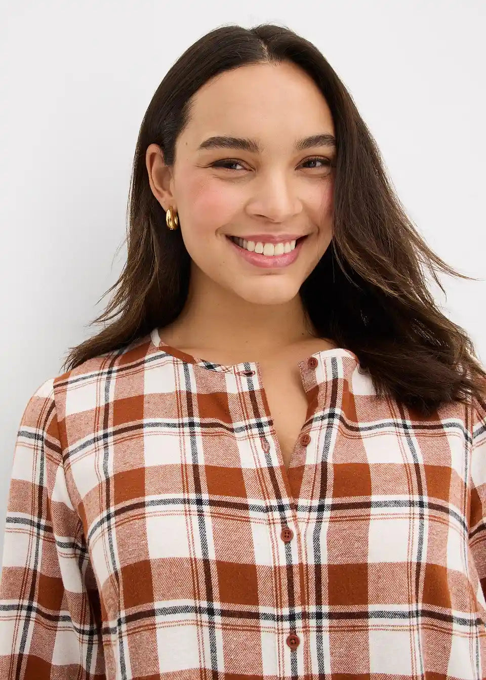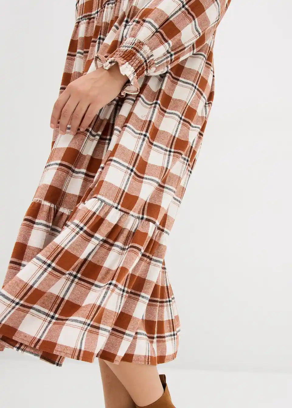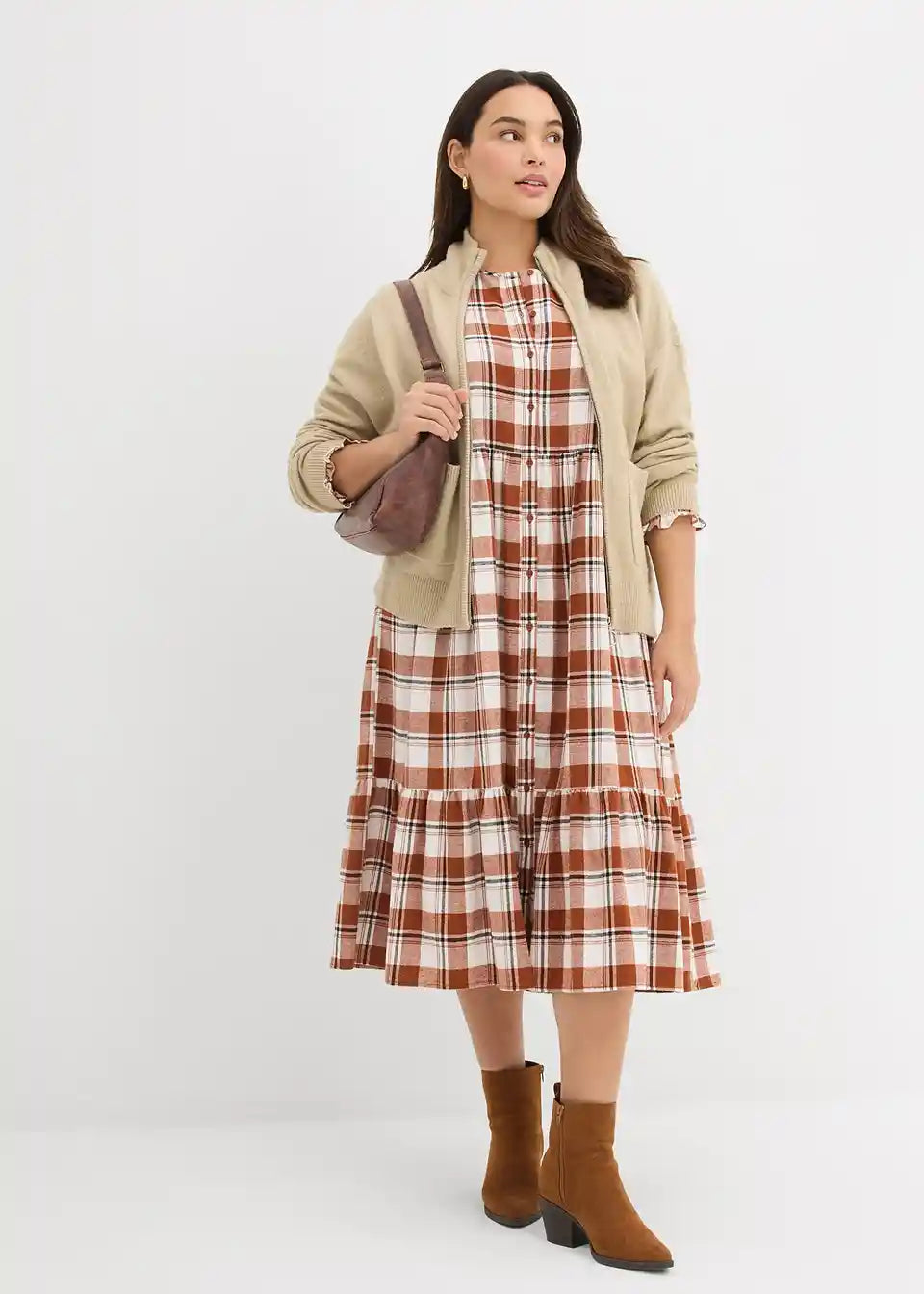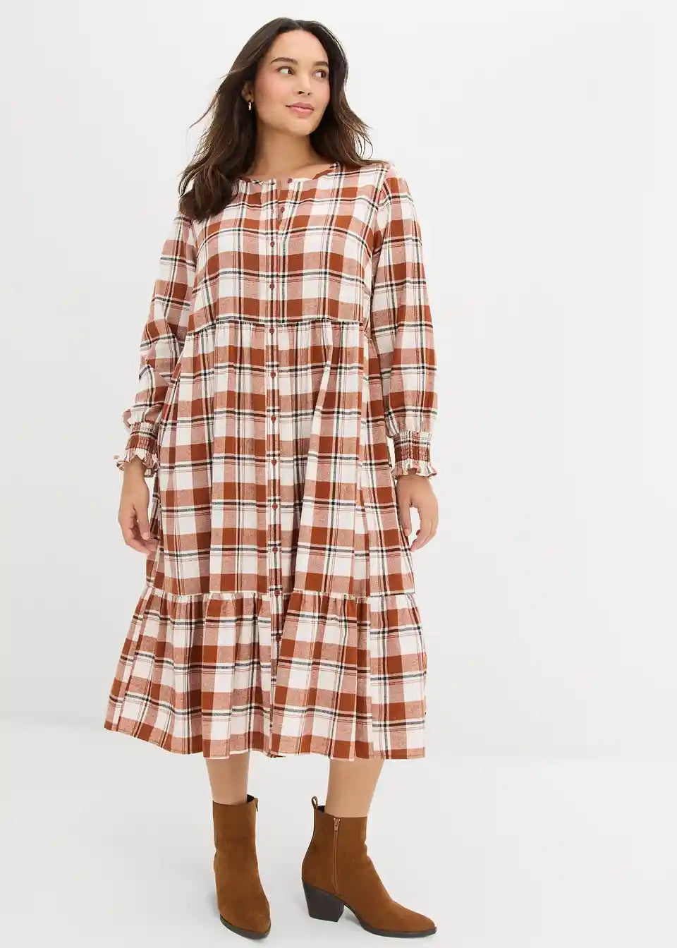 Midihaljina A-kroja od čistog pamuka. S punom prednjom dugmadi i elastičnim završecima rukava.