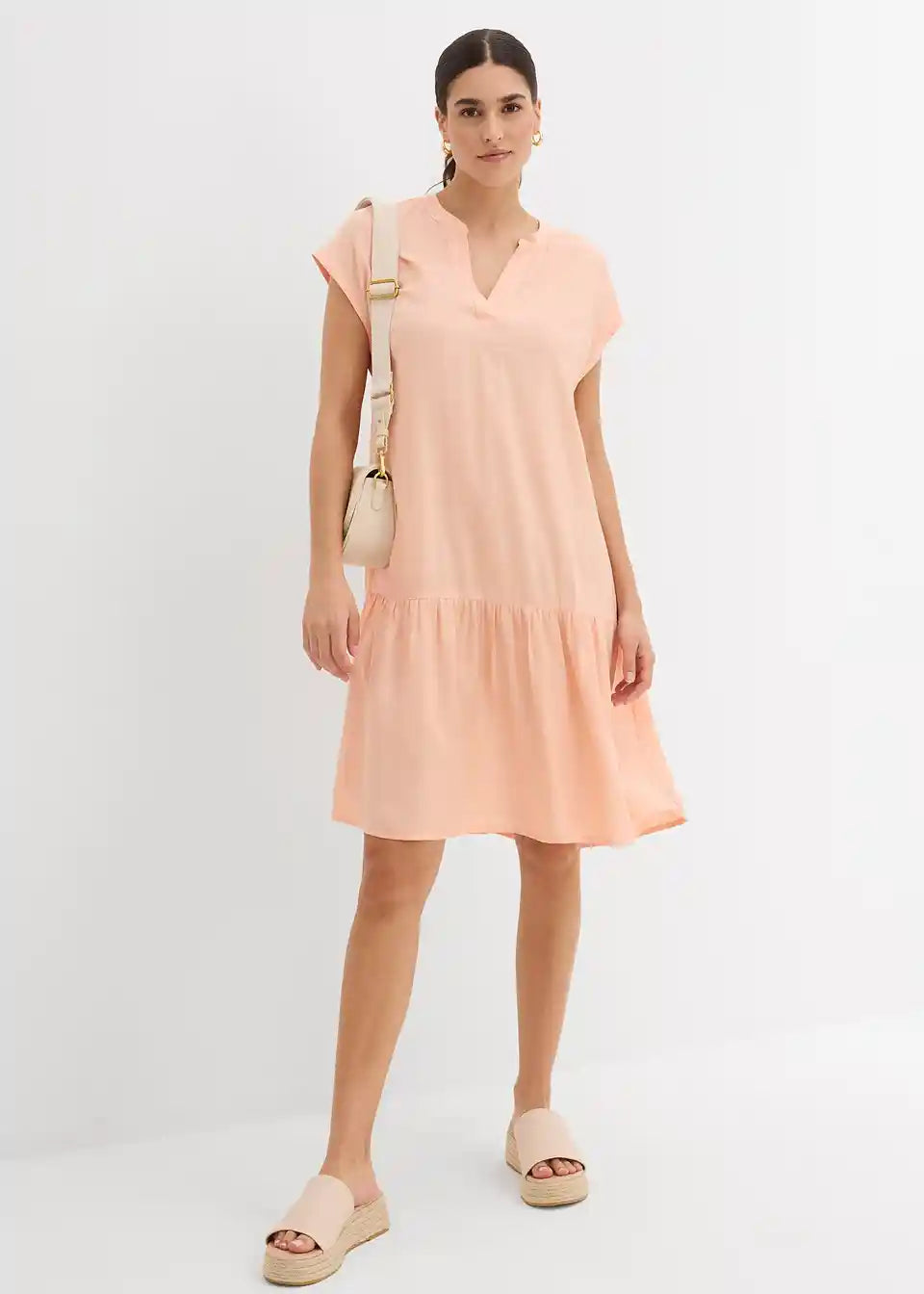 Midi majica-haljina do koljena sa volanima, ležerno pada, A-kroja