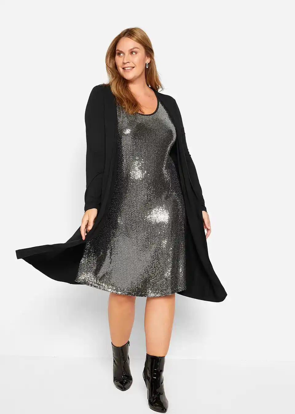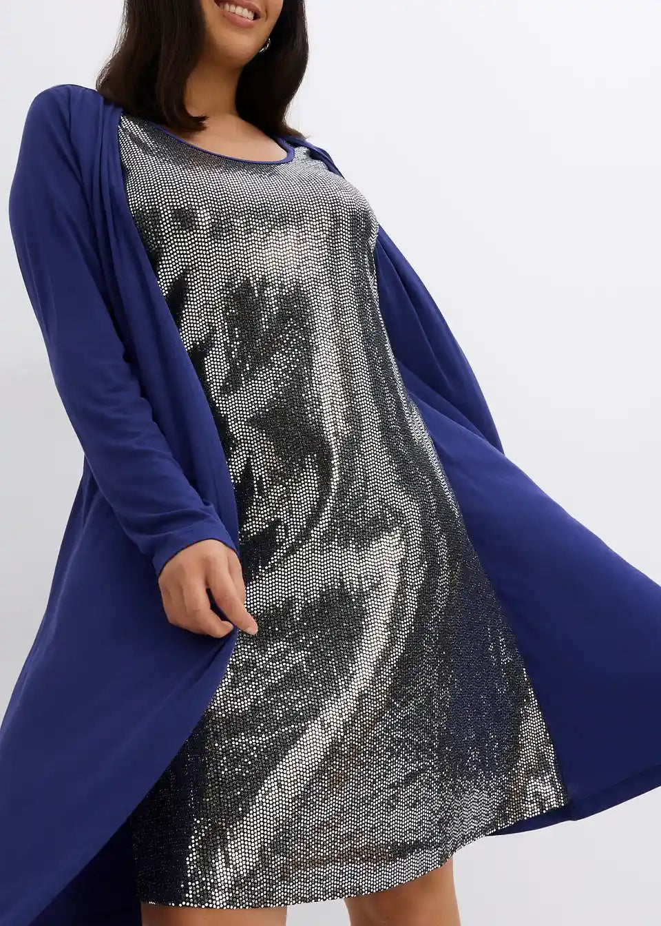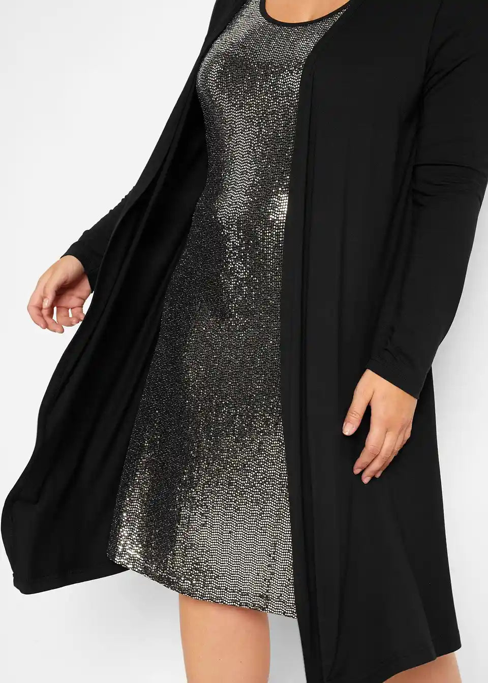 Prekrasna haljina-košulja s dvostrukim izgledom, iznutra ukrašena sjajnim kamenčićima