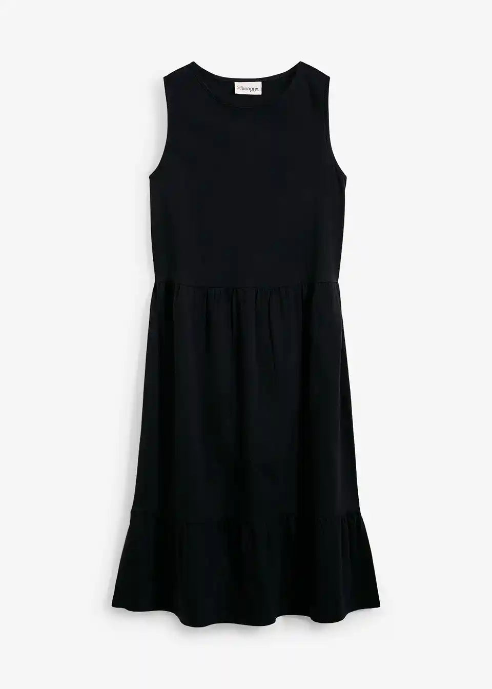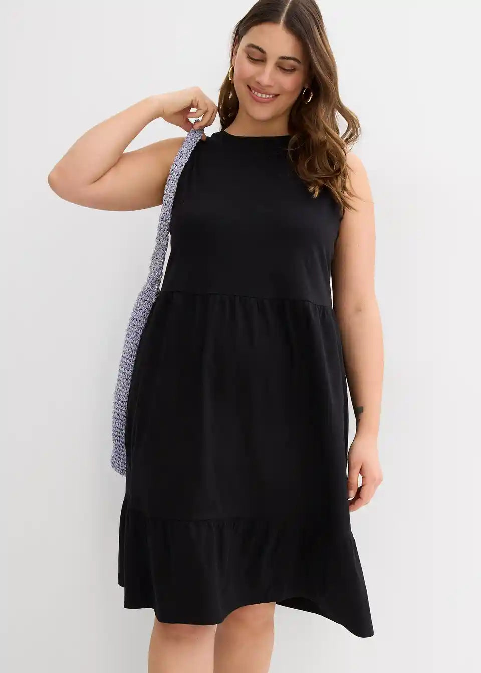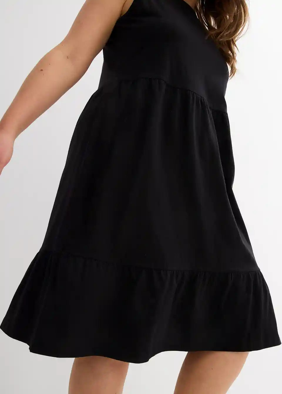 Lepršava haljina s okruglim izrezom, volanima i šavom u struku, A-kroja