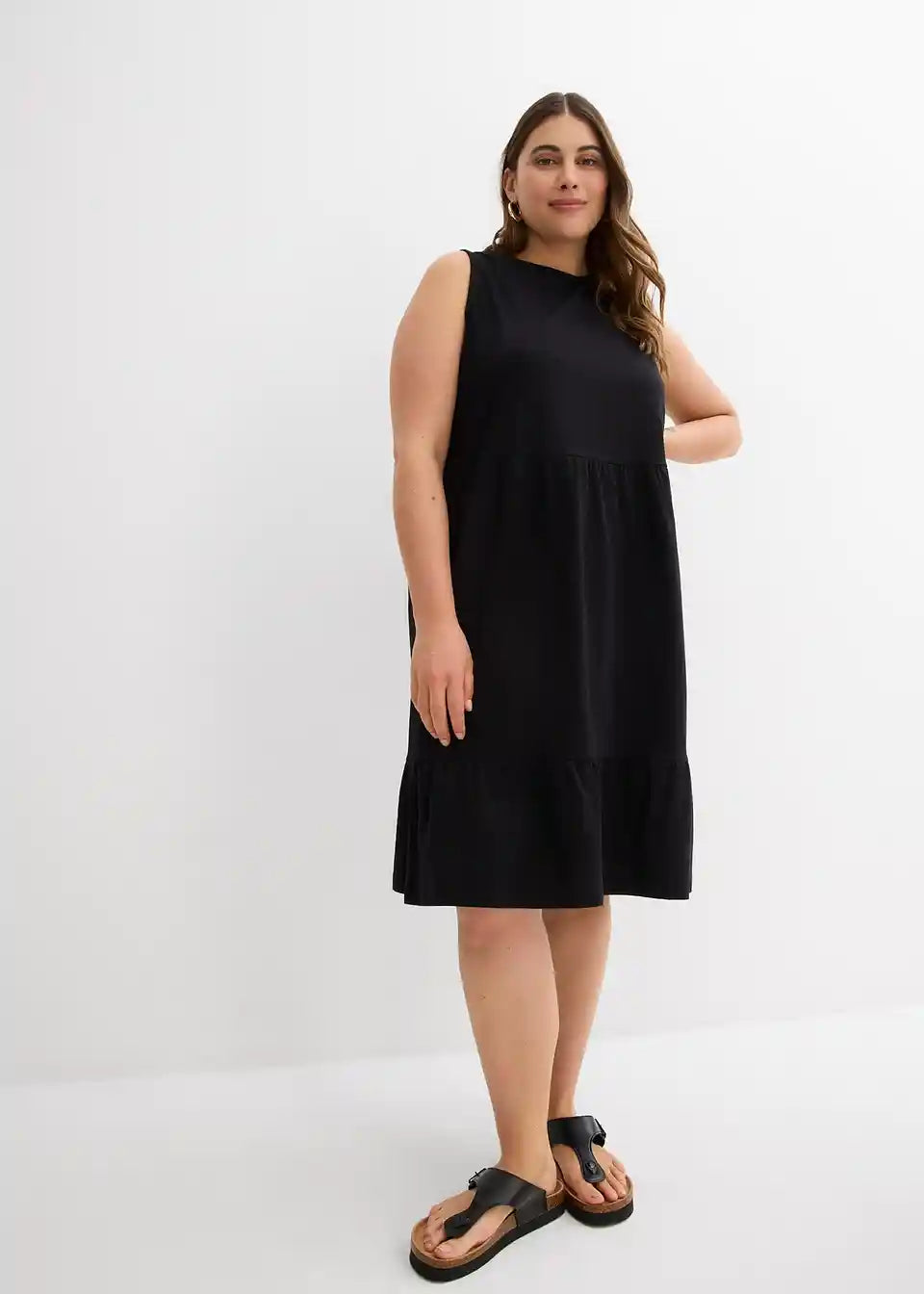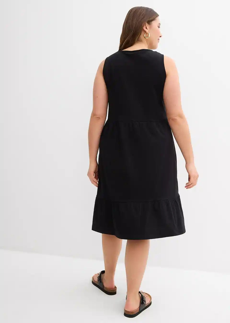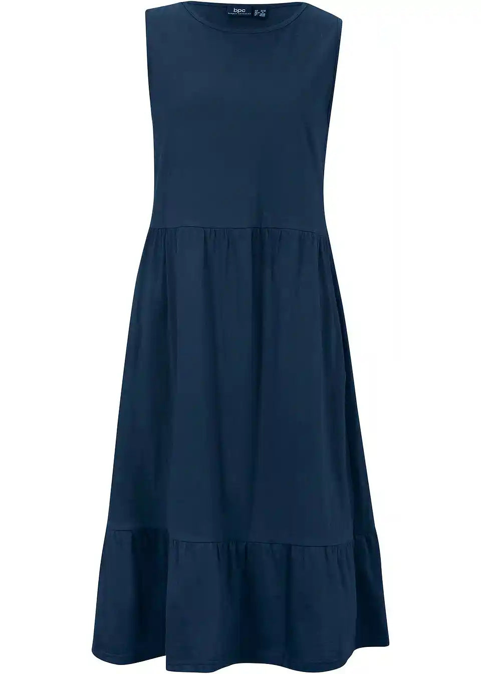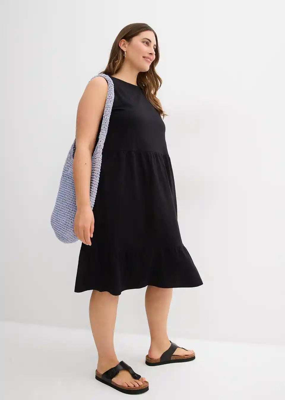 Lepršava haljina s okruglim izrezom, volanima i šavom u struku, A-kroja
