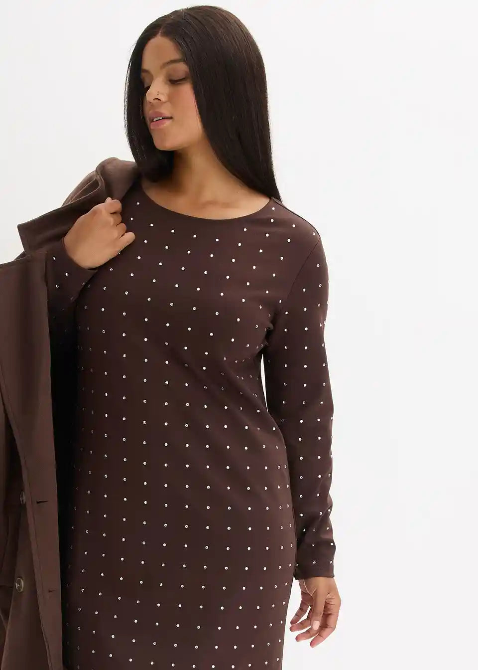 figuru naglašavajuća Punto-haljina od jerseya s dekorativnim aplikacijama od strasa i patentnim zatvaračem straga