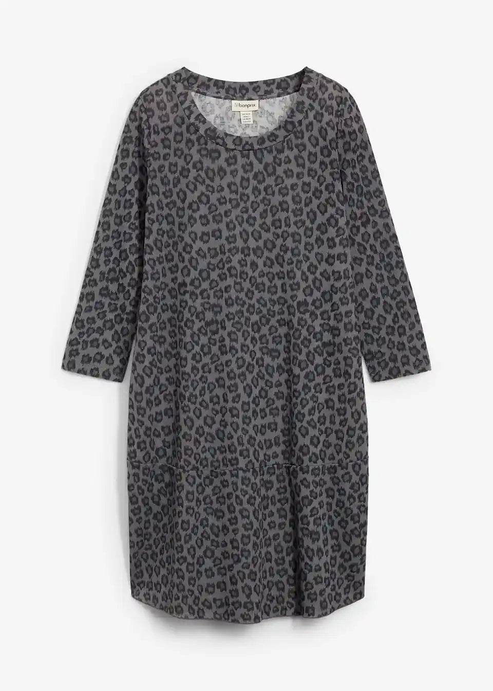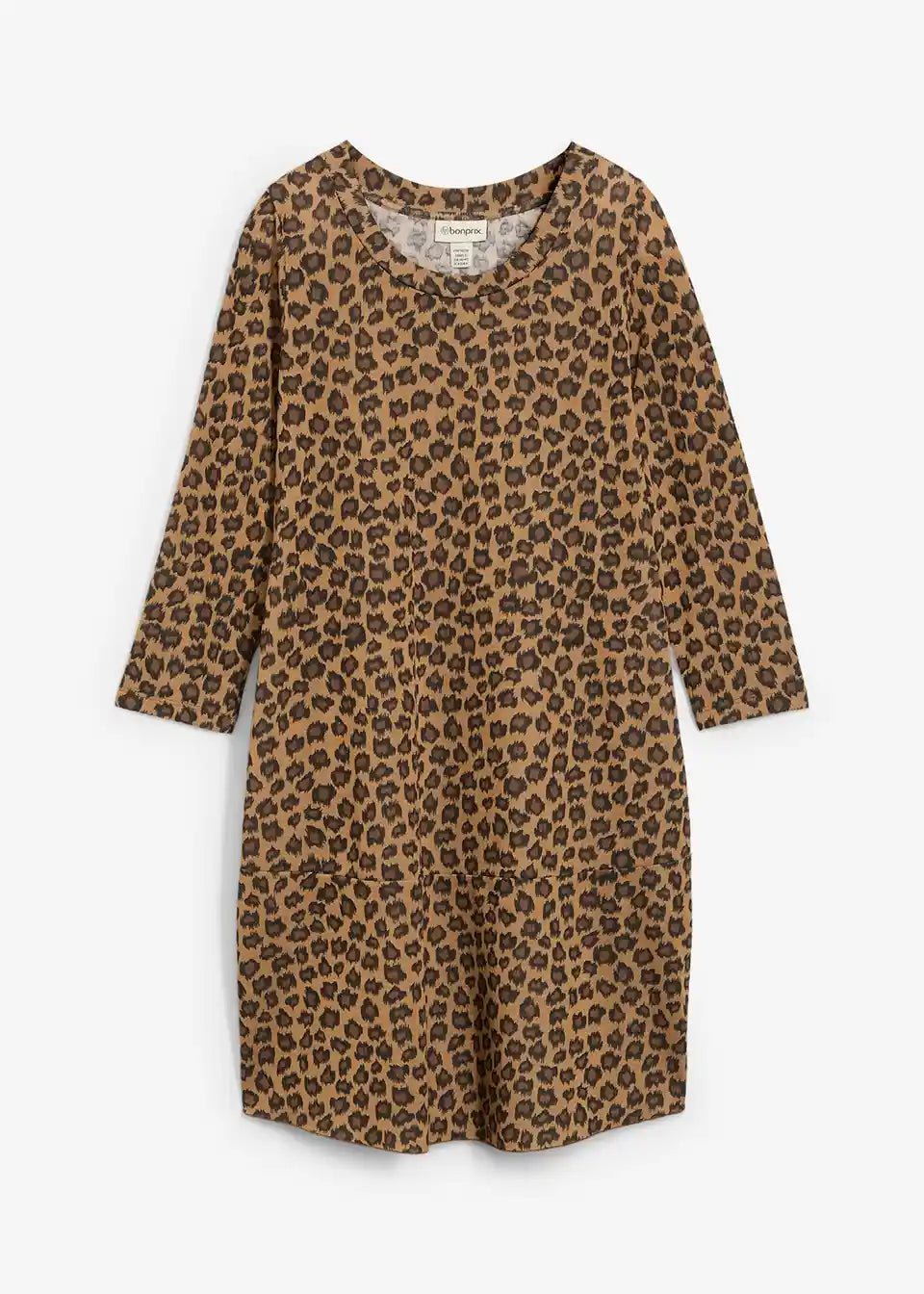 Trendovska majica-haljina u pletivom izgledu s printom i 3/4 rukavima