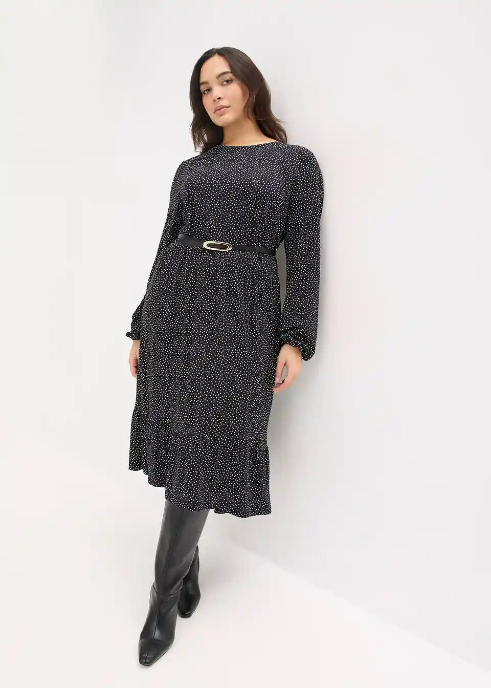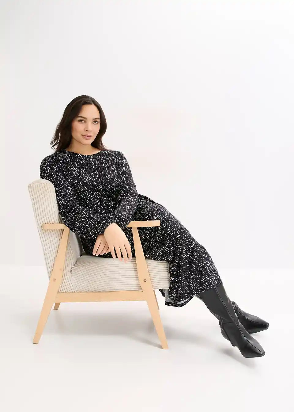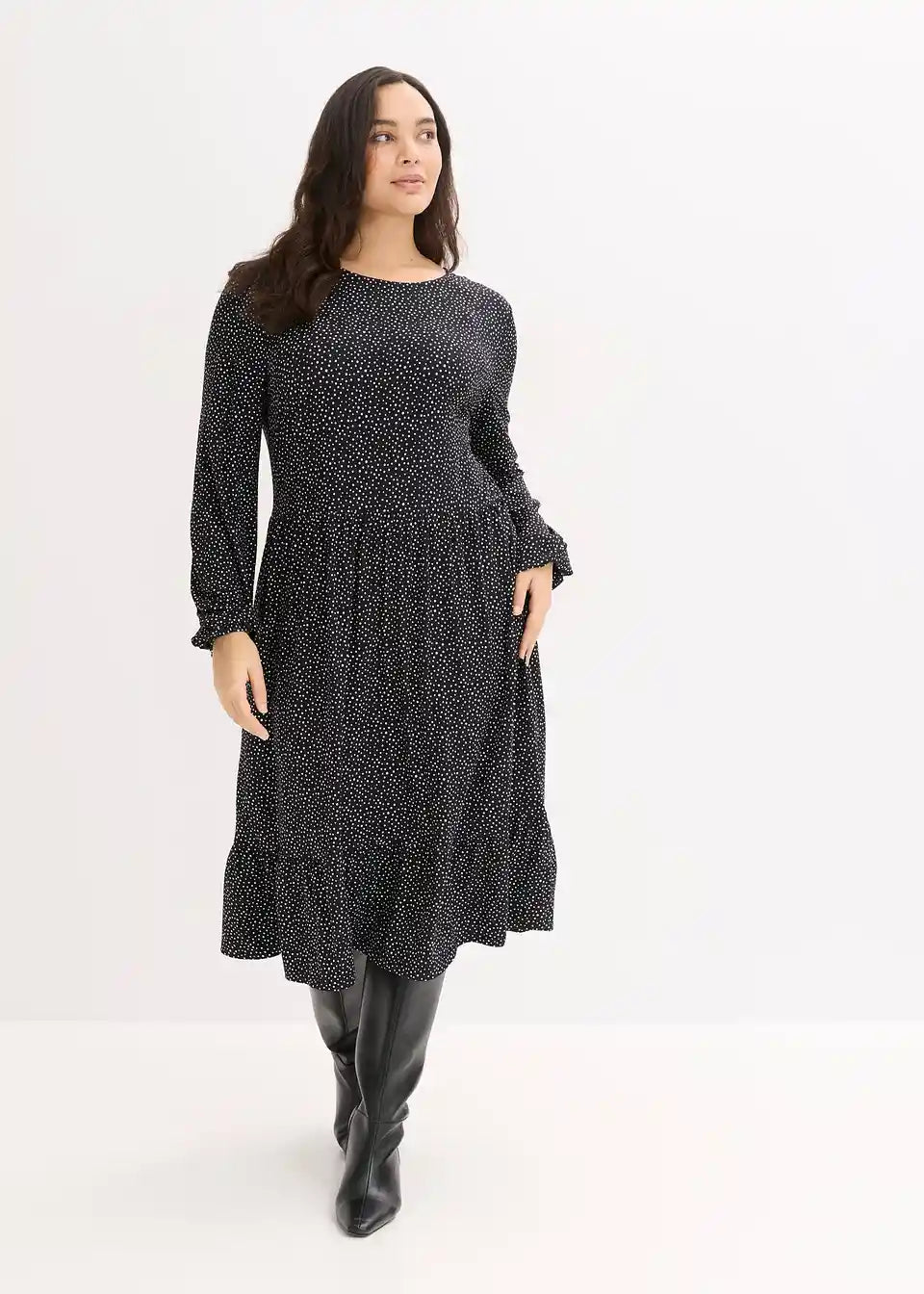Srednje duga haljina s kopčanjem na gumb na zatiljku