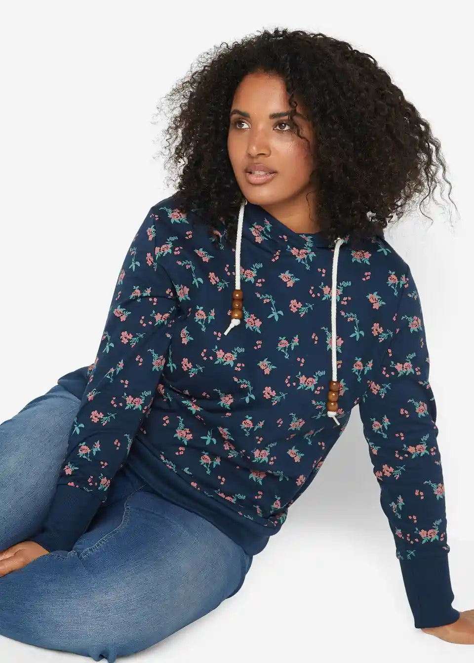 Sweatshirt s kapuljačom, vezicama i drvenim perlama