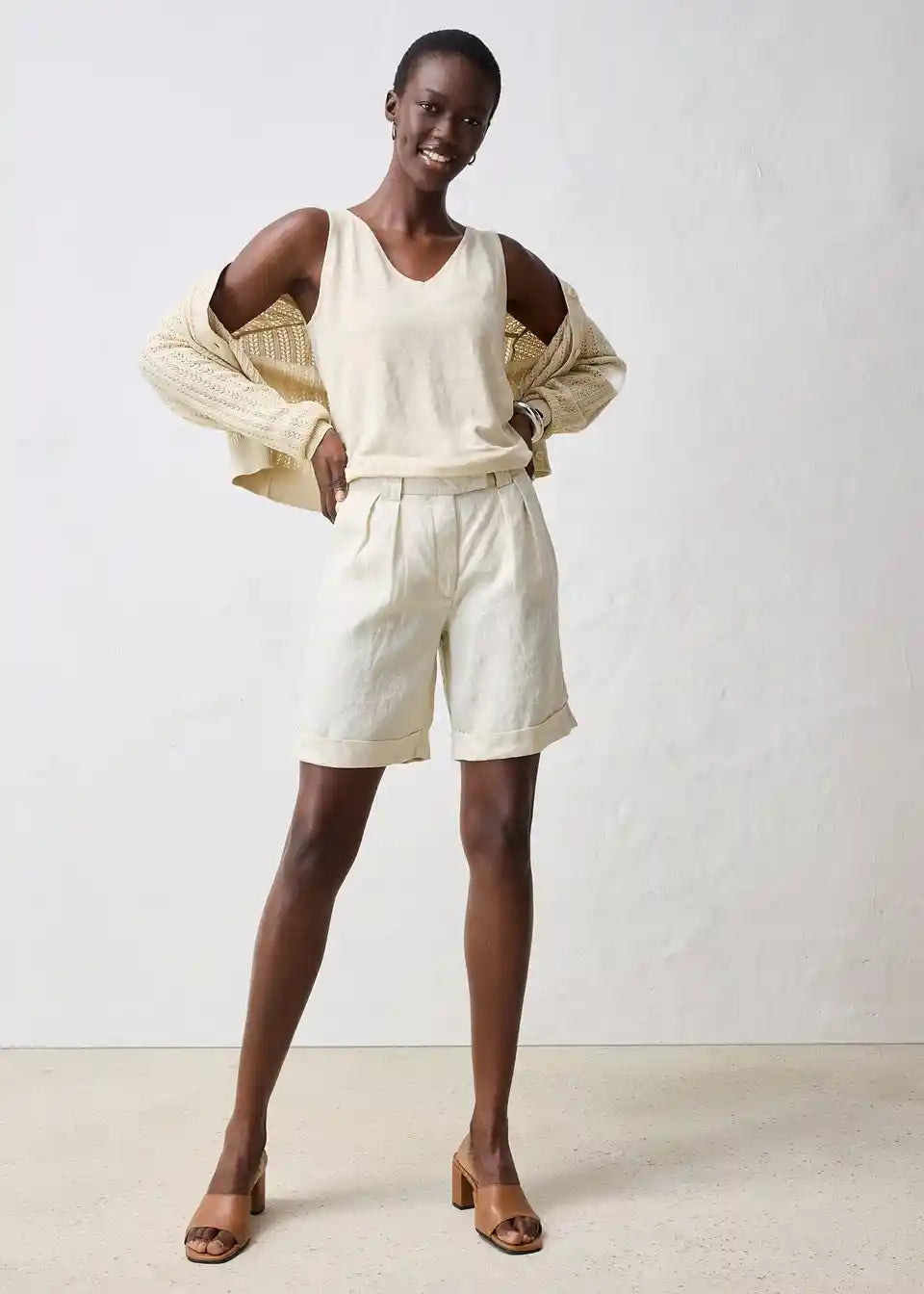 Lan je izdržljivo prirodno vlakno i zahvaljujući svojim svojstvima pruža osjećaj hlađenja na koži. Plemenite nabore i strukturirana površina su karakteristične značajke. Udoban i prozračan za nošenje, lan je tvoj idealan pratitelj tijekom ljeta.