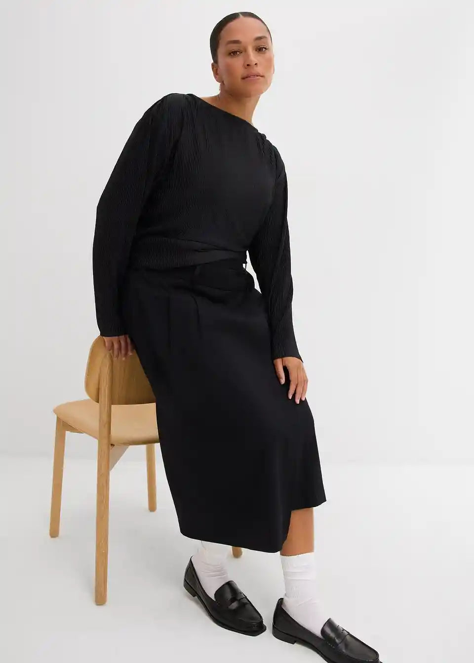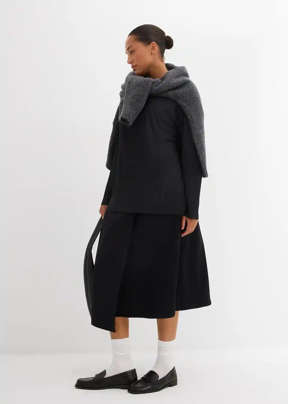Midi suknja u wrap izgledu s bočnim džepovima i asimetričnim porubom