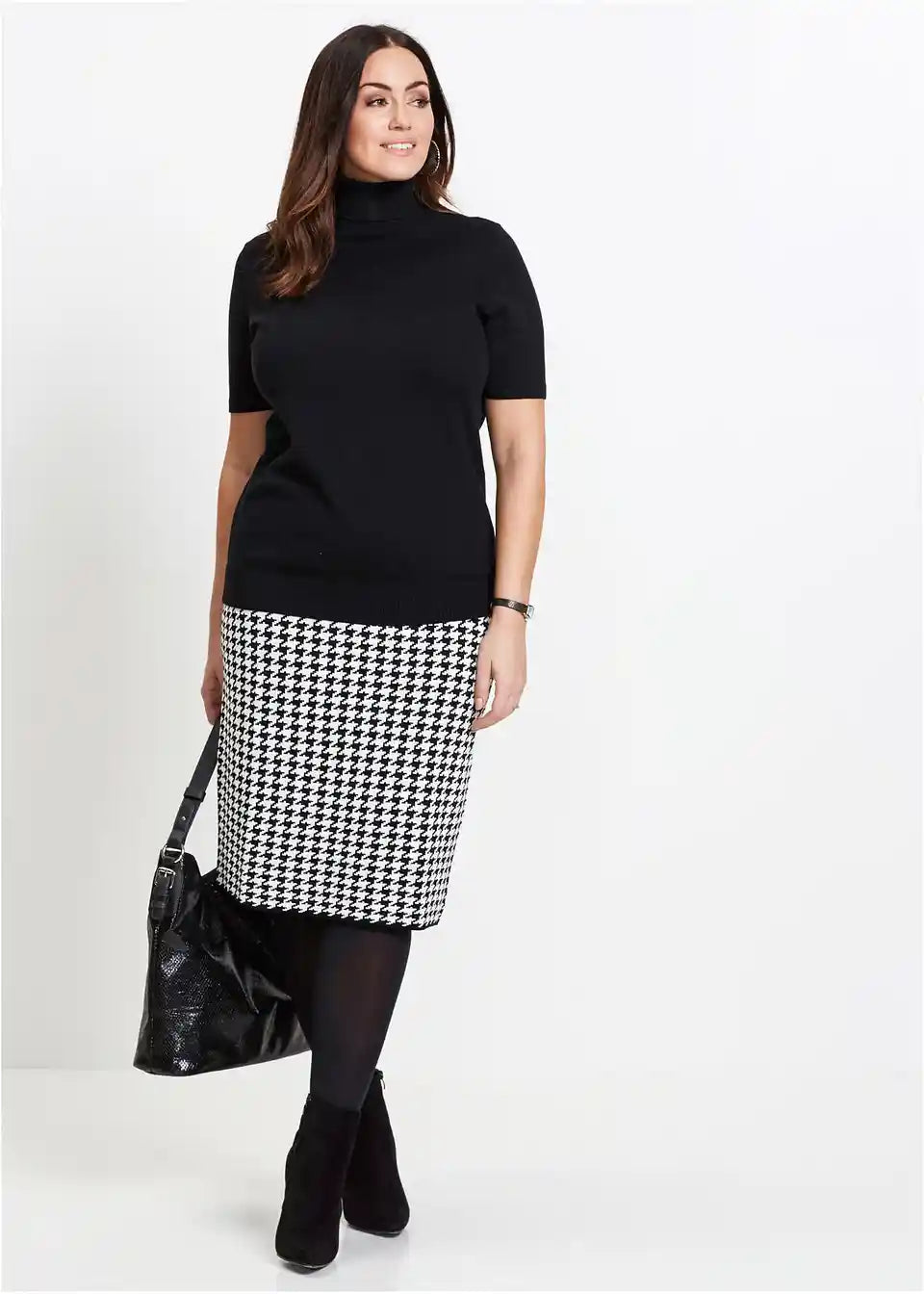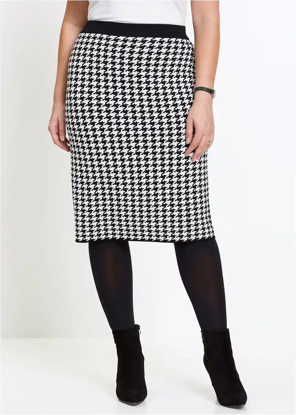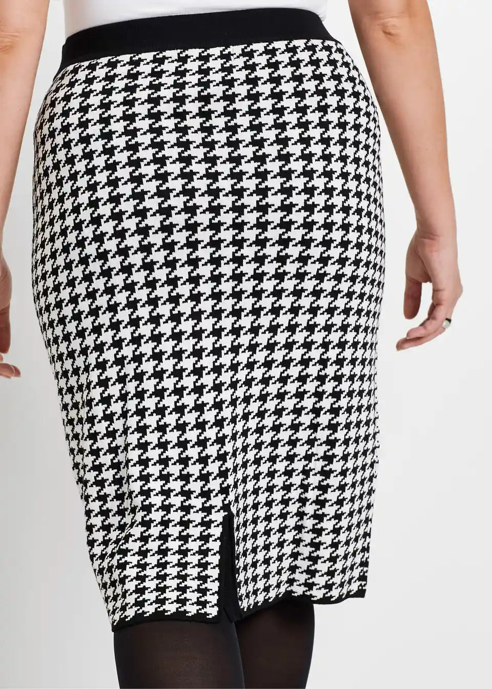 U klasičnom pepita uzorku s malim prorezom, dužina cca. 64 cm za vel. 36/38 do cca. 70 cm za vel. 56/58, periva u perilici.