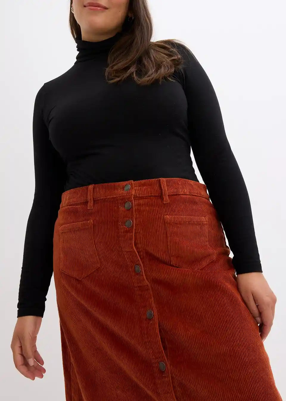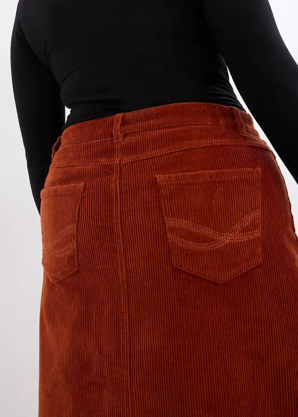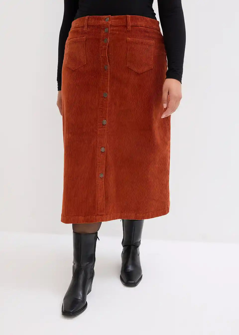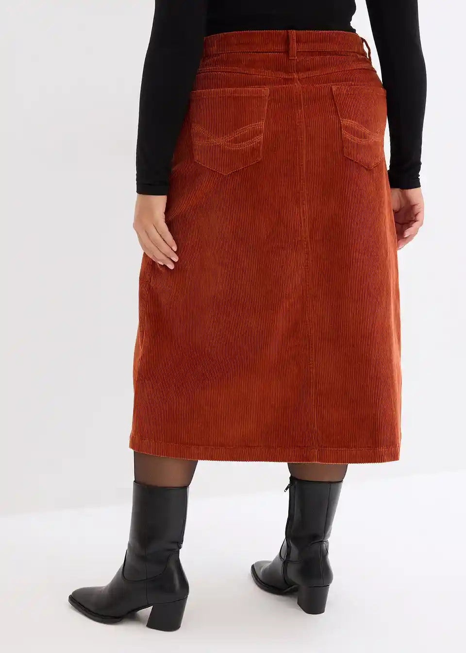 Stretch suknja od samta s kopčanjem na gumbe u midi dužini
