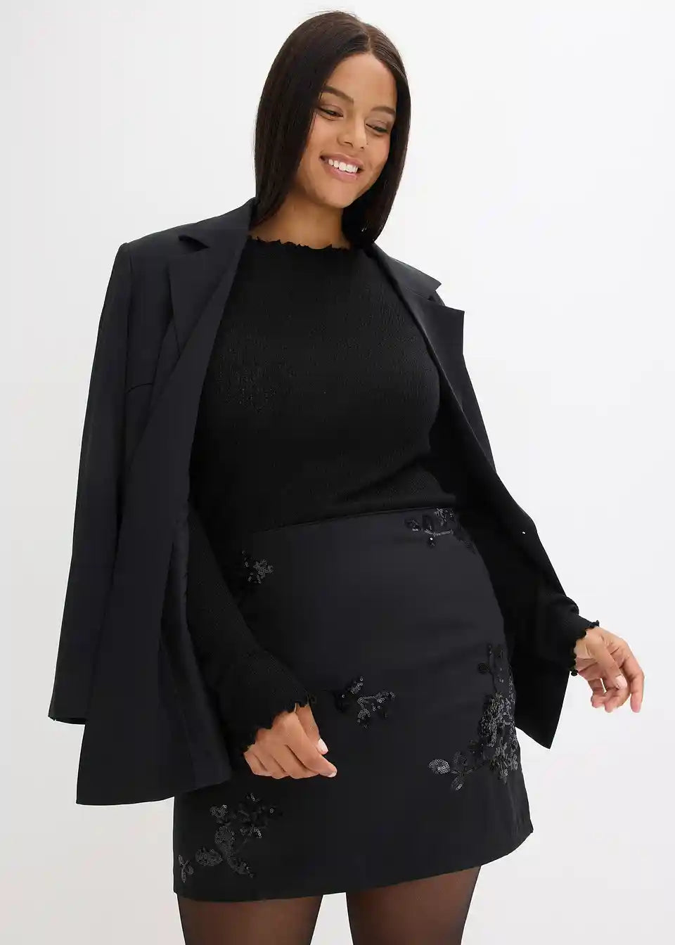 Sjajna satenska suknja s blještavim aplikacijama