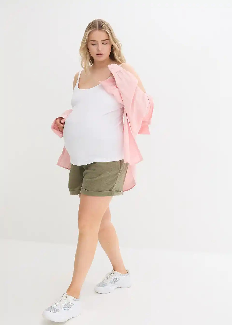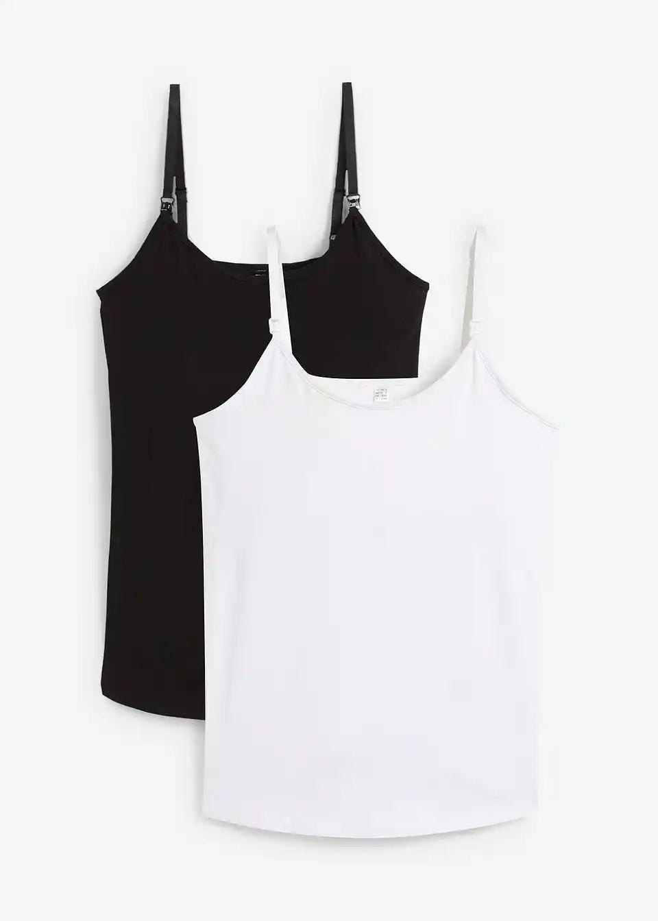 Paket od 2 topa od mekanog jersey organskog pamuka s tankim podesivim naramenicama i funkcionalnim zatvaračem koji olakšava dojenje. Ispod je mekani unutarnji top s elastičnim porubom.