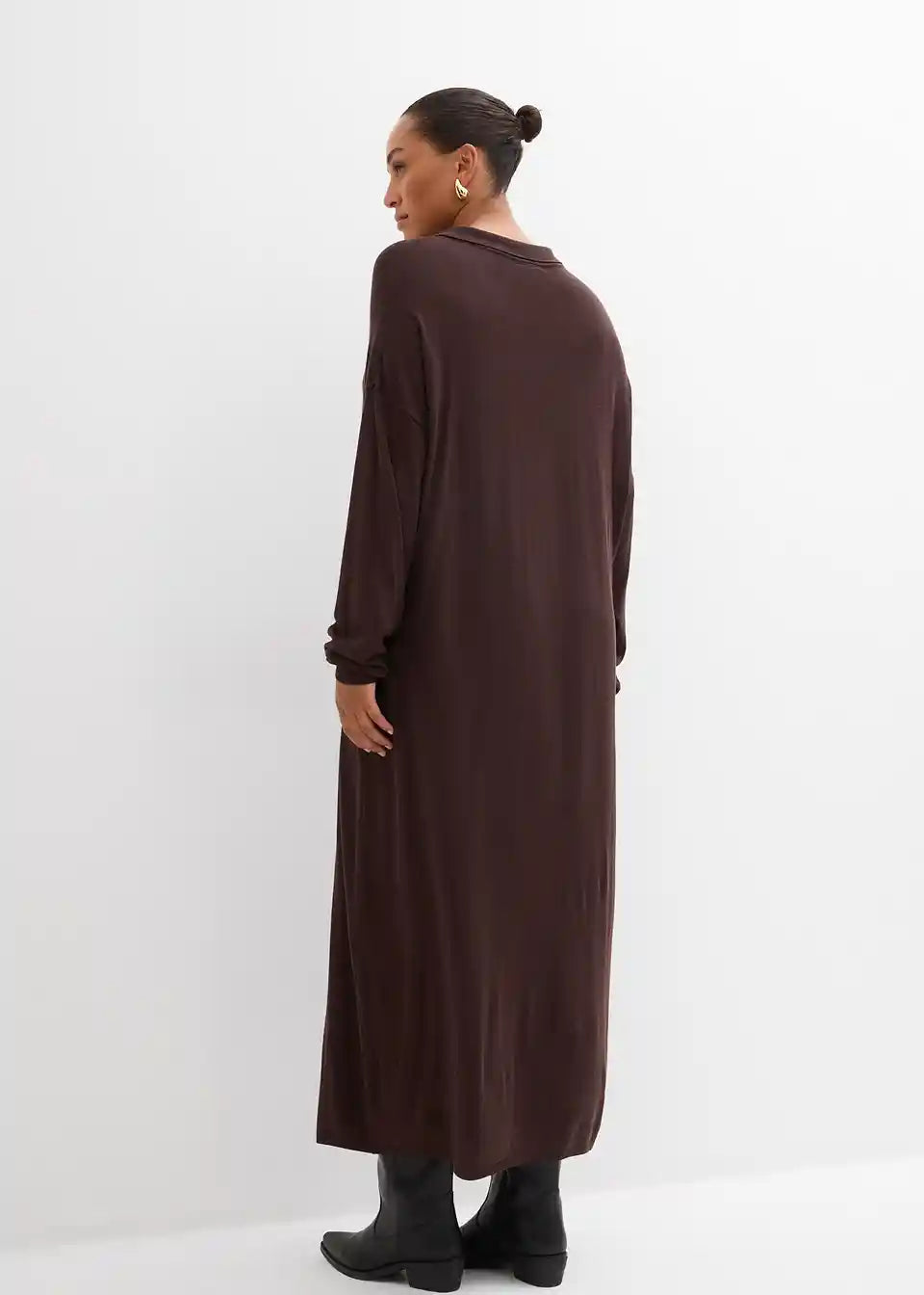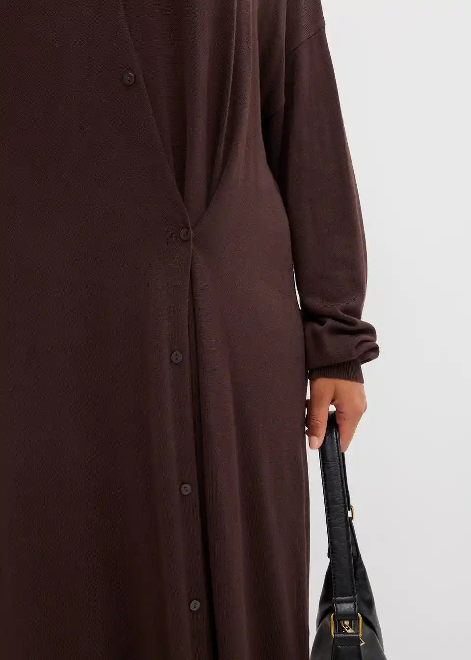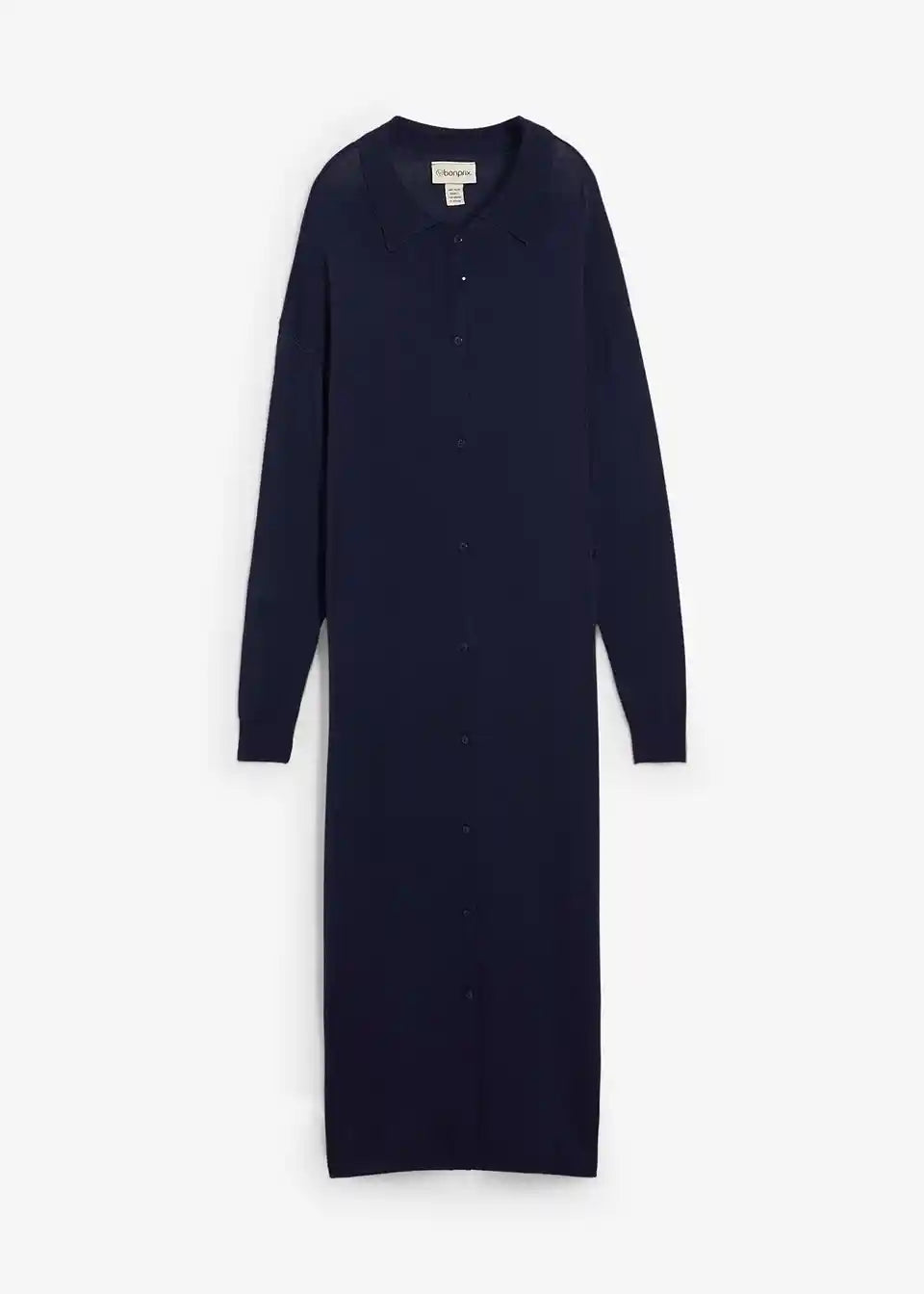 Fino pletena haljina s otvorenim ovratnikom, dugim rukavima i kopčanjem s gumbima sprijeda