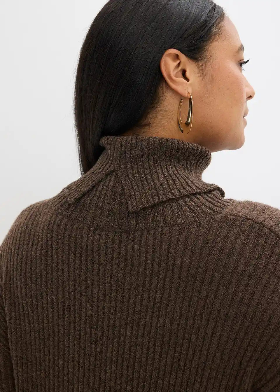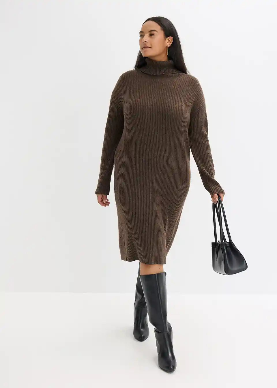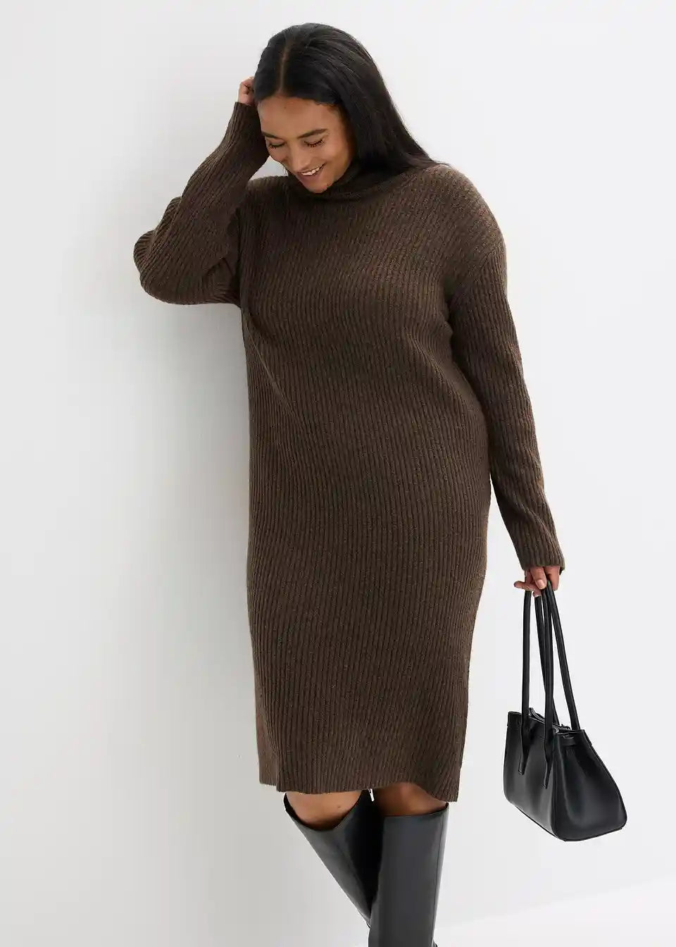 Rebrasta pletena haljina s dolčevita ovratnikom