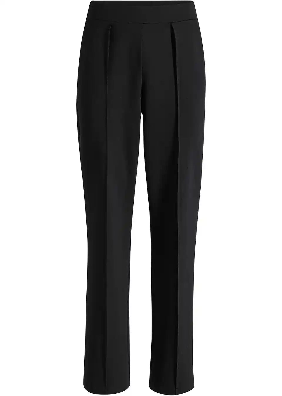 Udobne hlače s gumicom od čvrste Interlock kvalitete s optikom lajsni i džepovima sa strane.