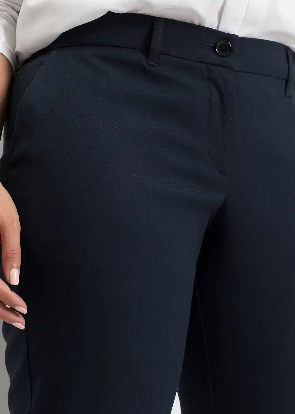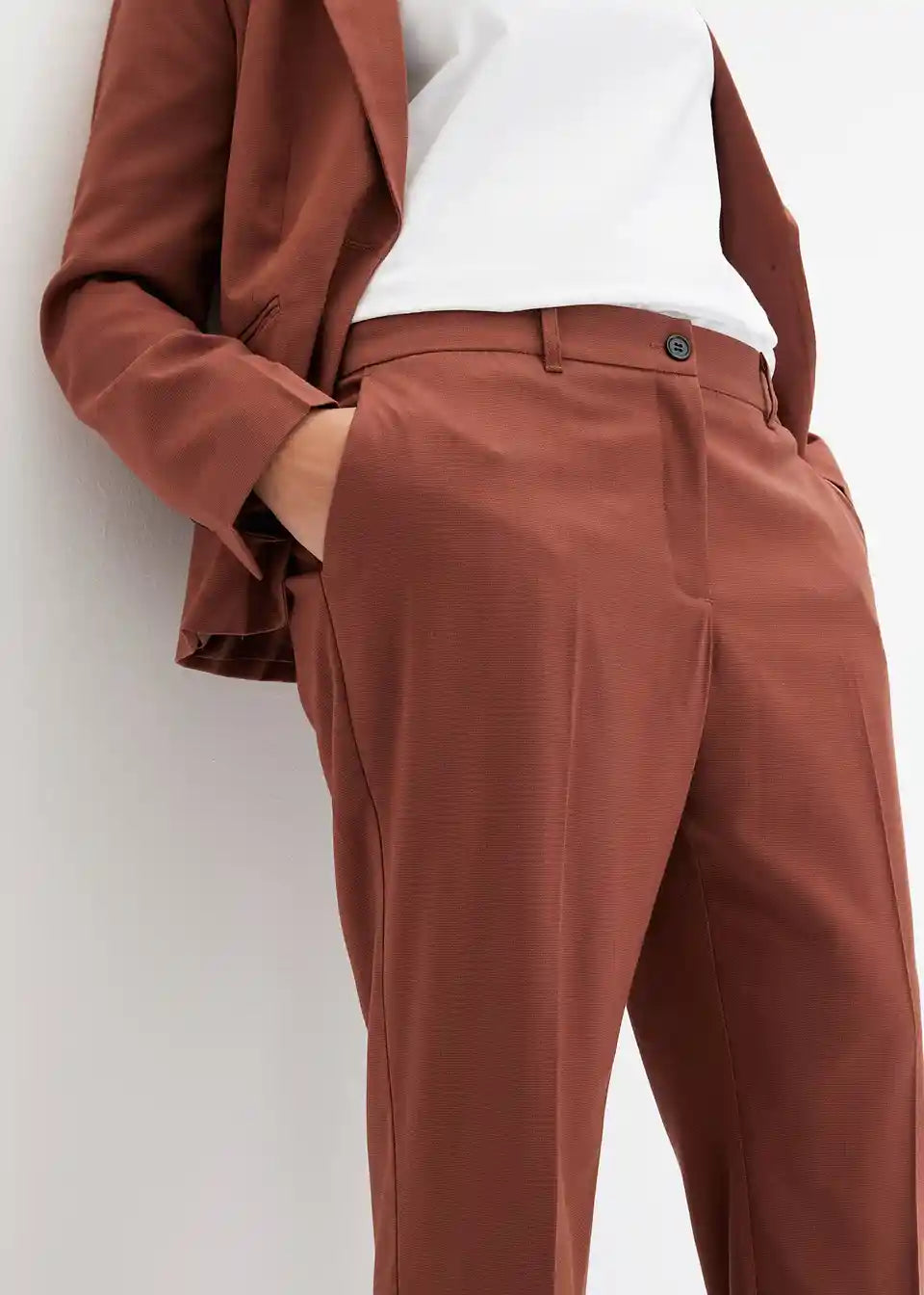 Poslovne hlače sa bočnim džepovima. Nabori na prednjoj i stražnjoj strani daju hlačama posebno elegantan izgled.