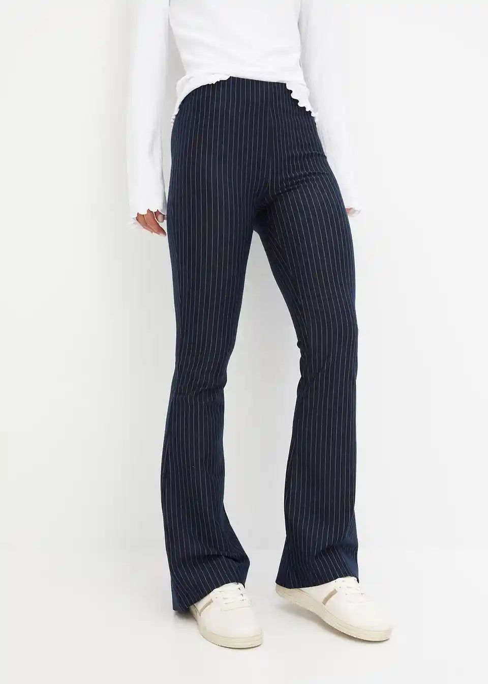 Hlače zvonolikog kroja bez kopčanja s tankim prugama