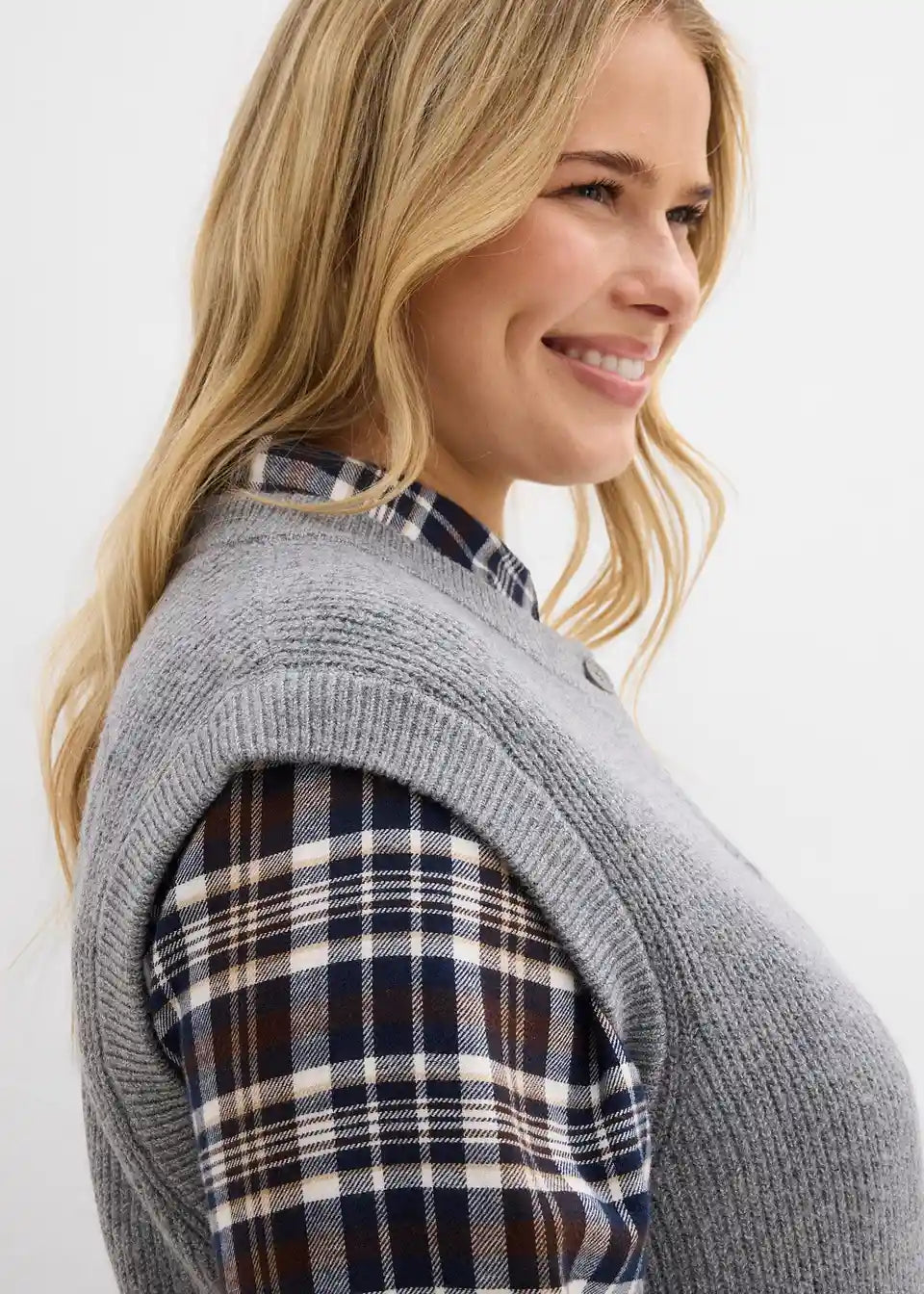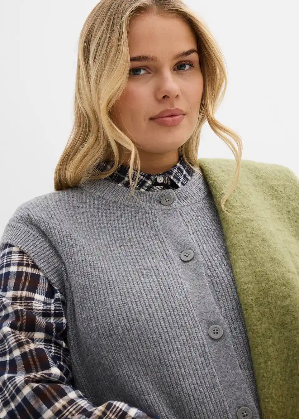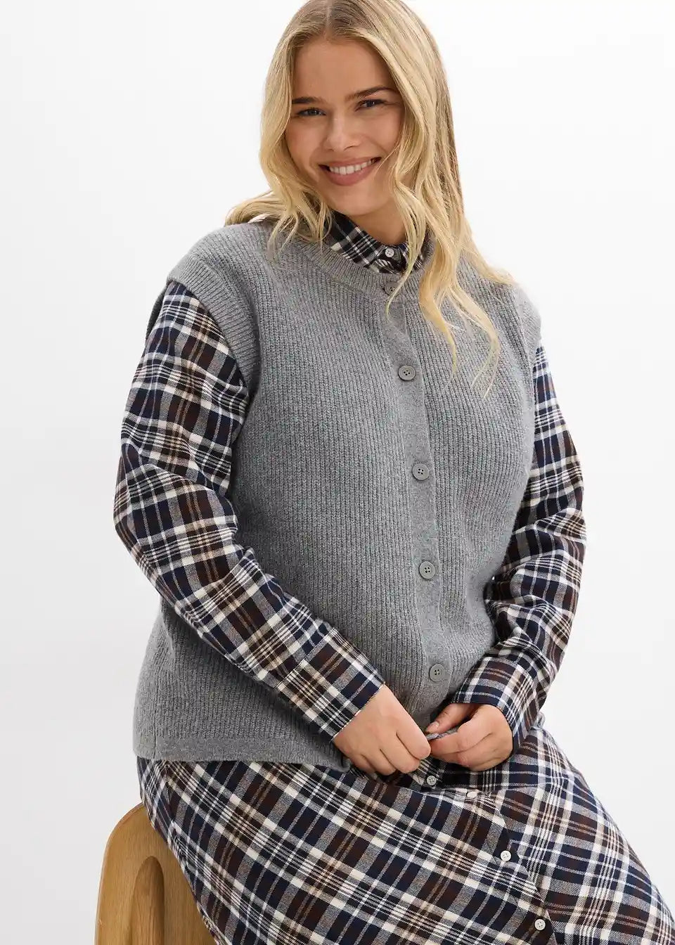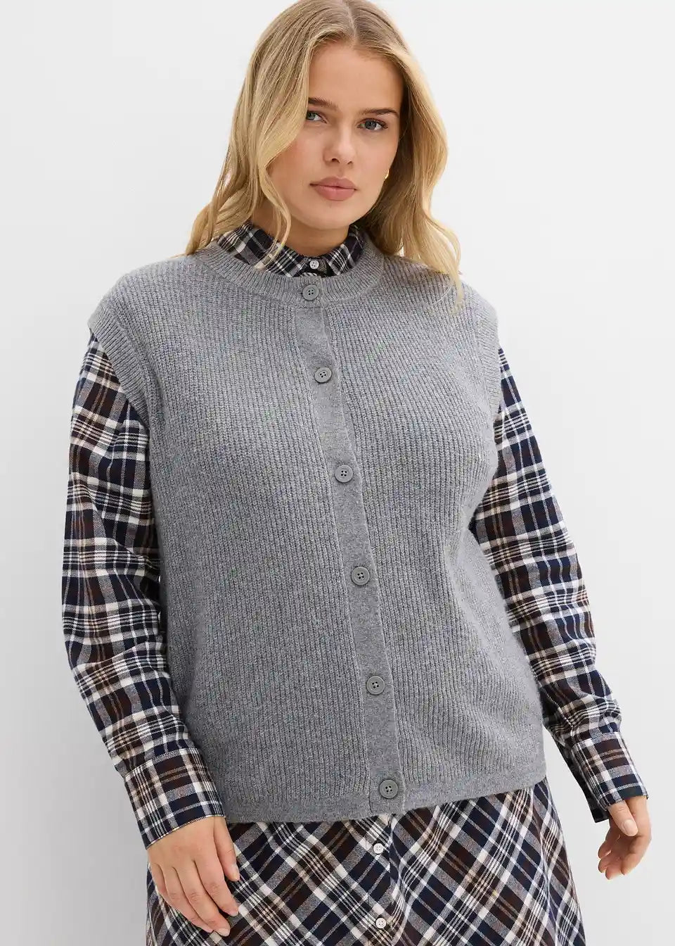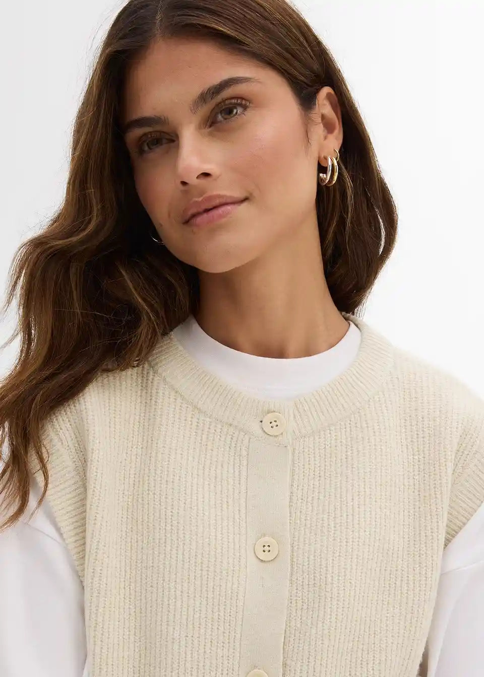 Udoban pleteni prsluk s detaljima na gumbima