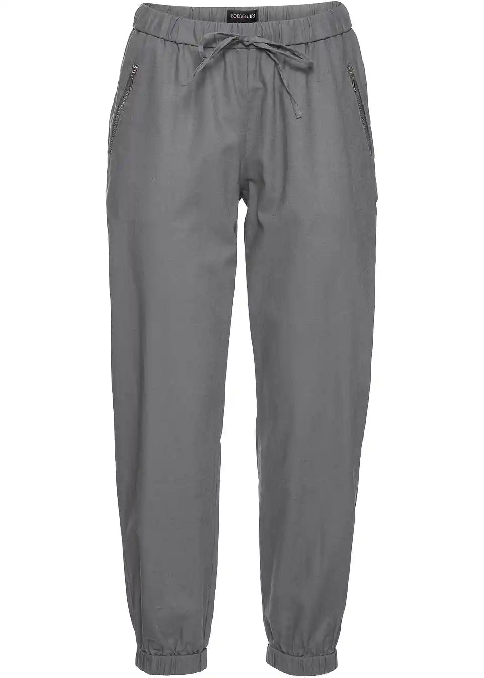 Ležerno krojene 7/8 lanene hlače s elastičnim manžetama na nogavicama.