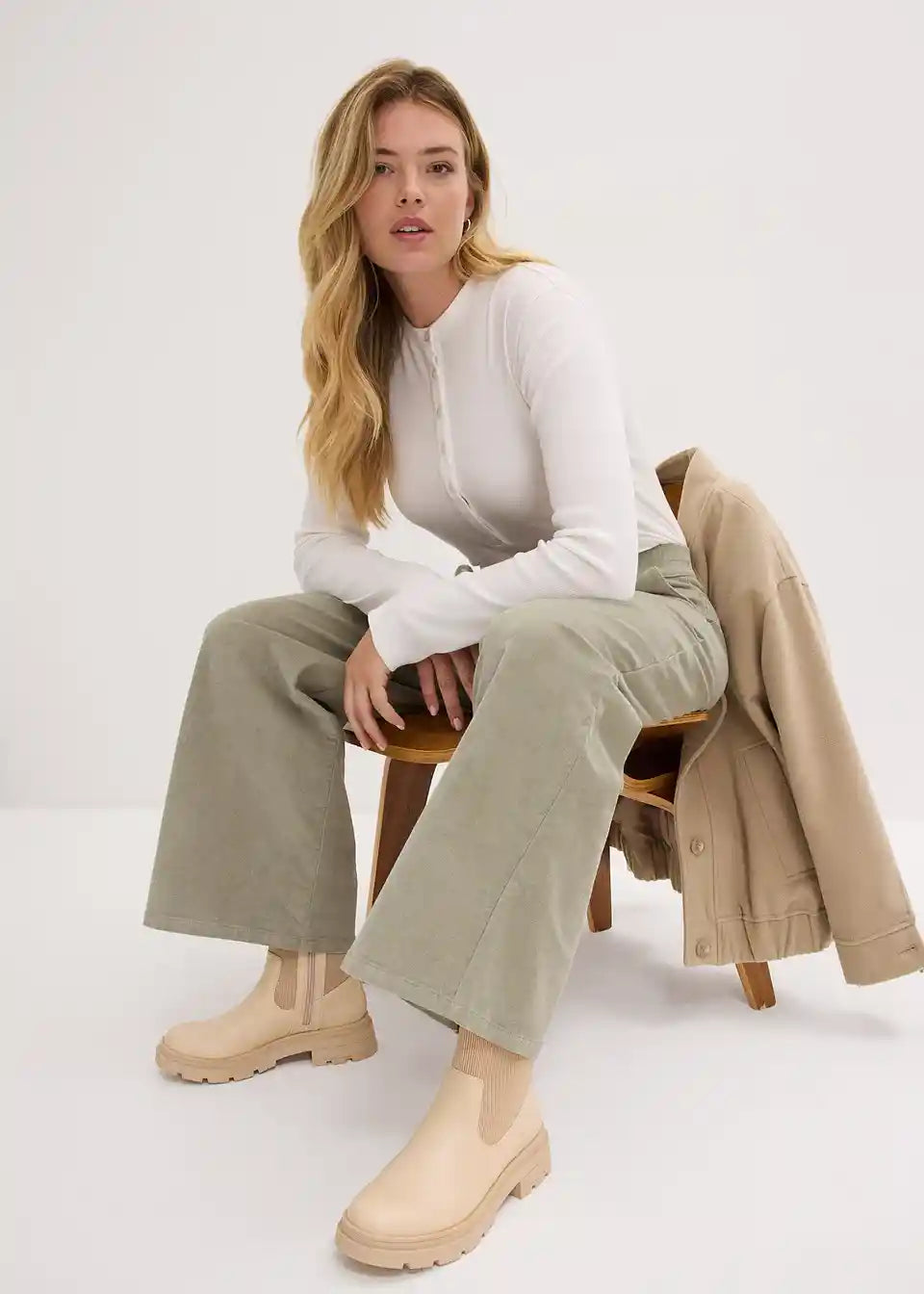 Ležerne Palazzo hlače od korde stvaraju efekt mršavljenja zahvaljujući pomaknutim bočnim šavovima