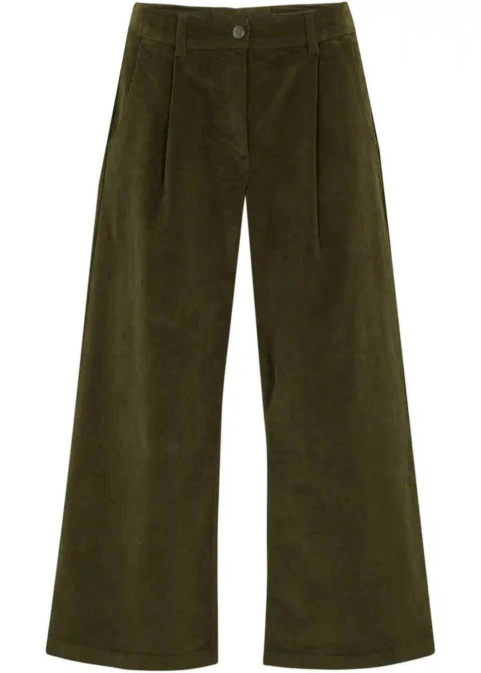Široke culotte hlače izrađene od rastezljivog samta s udobnim visokim pojasom