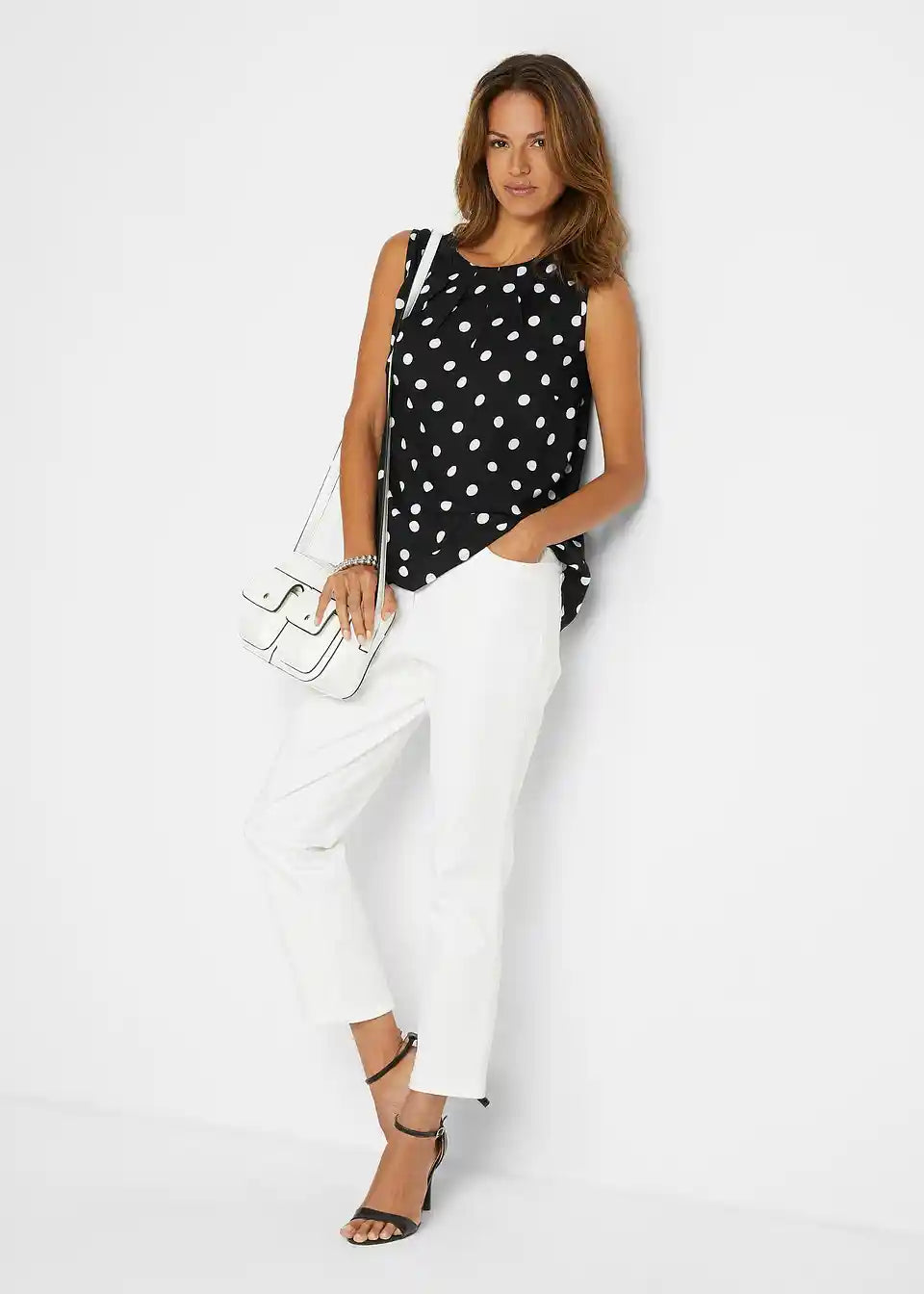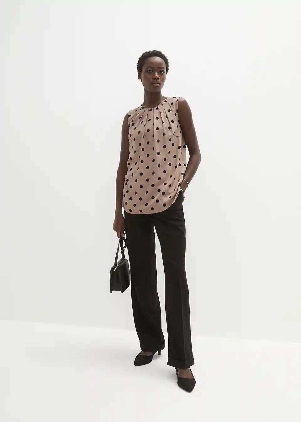 Prekrasan top na točkice s malim naborima na izrezu