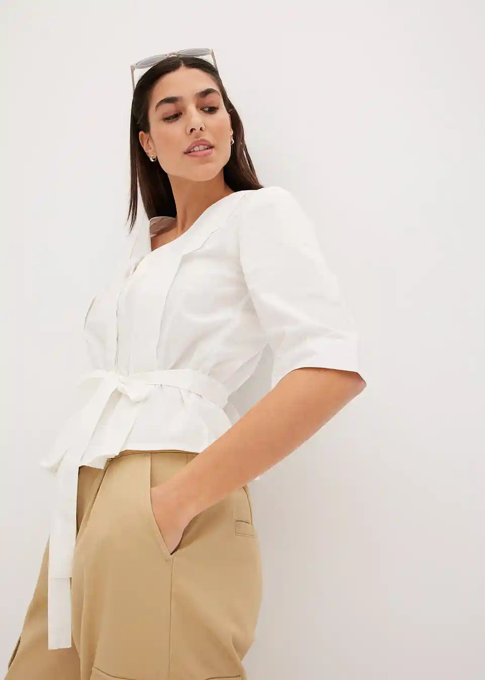 Fina ljetna bluza s lijepim detaljima nabora i skrivenim kopčanjem na gumbe