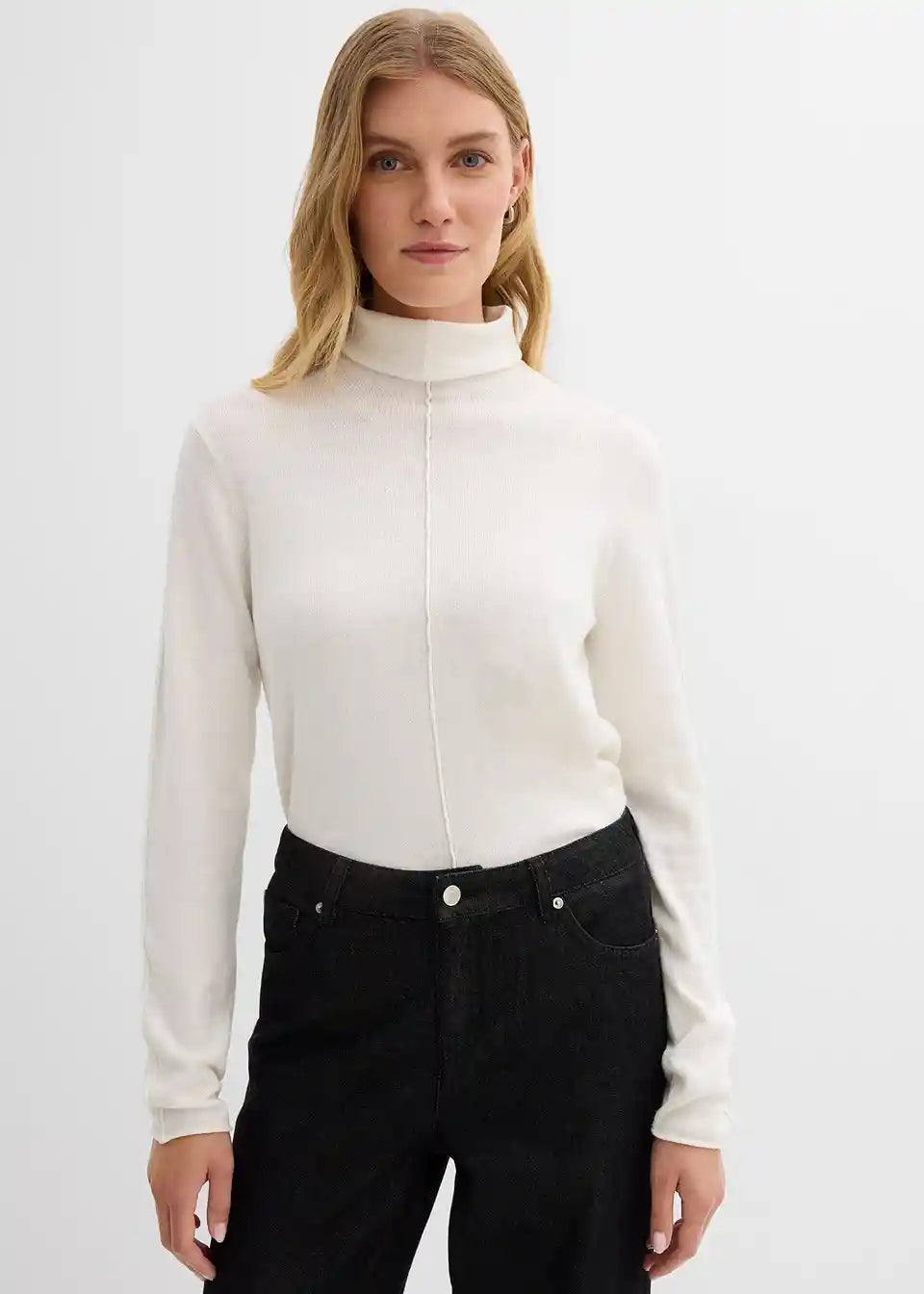 Fino pleteni pulover s dolčevitom i dugim rukavima od pamučno-kašmirske mješavine