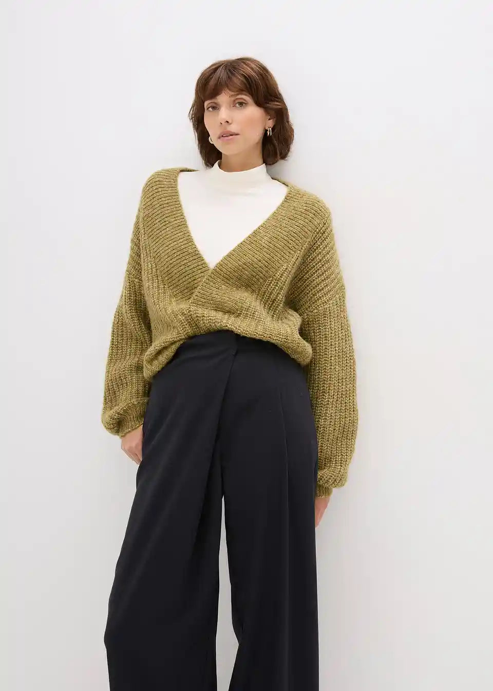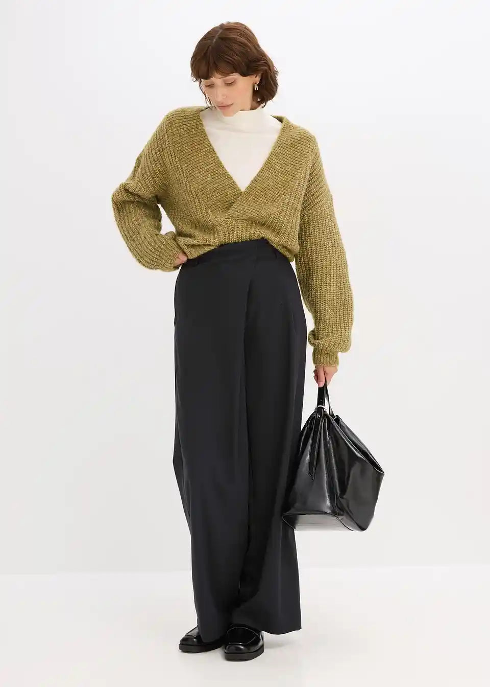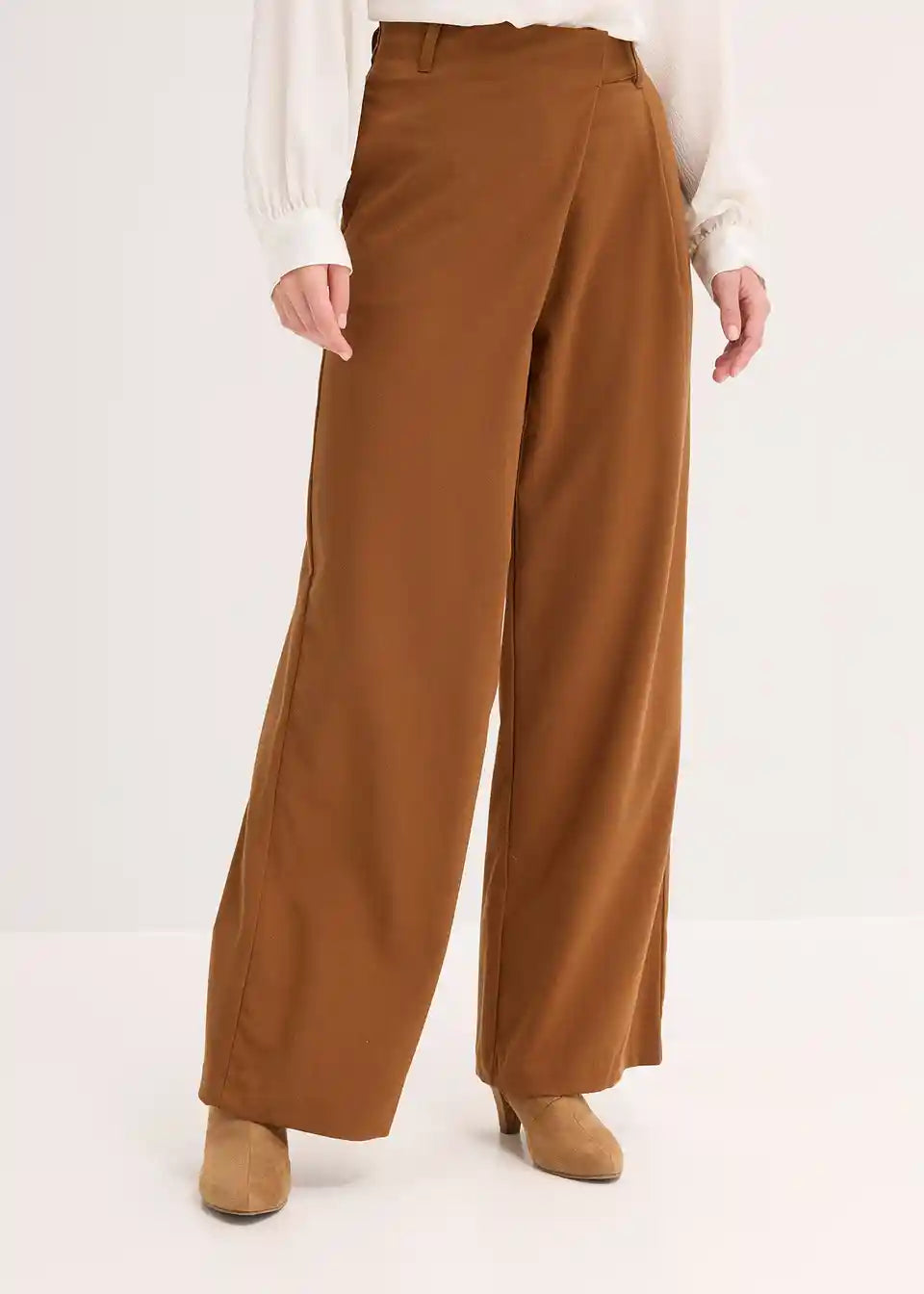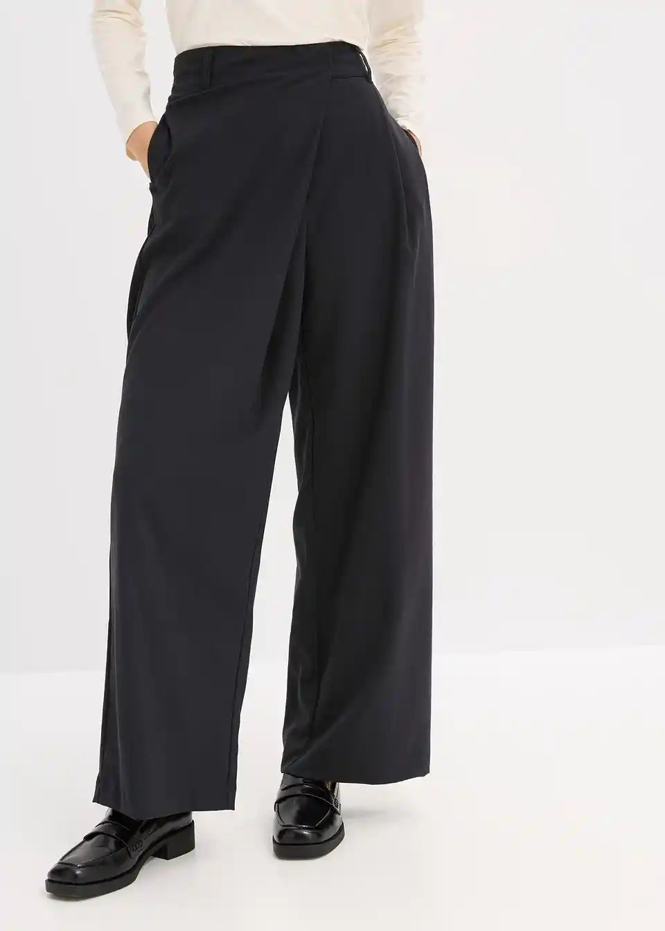 High-Waist hlače s preklopnim izgledom, širokim pojasom i ravnim nogavicama