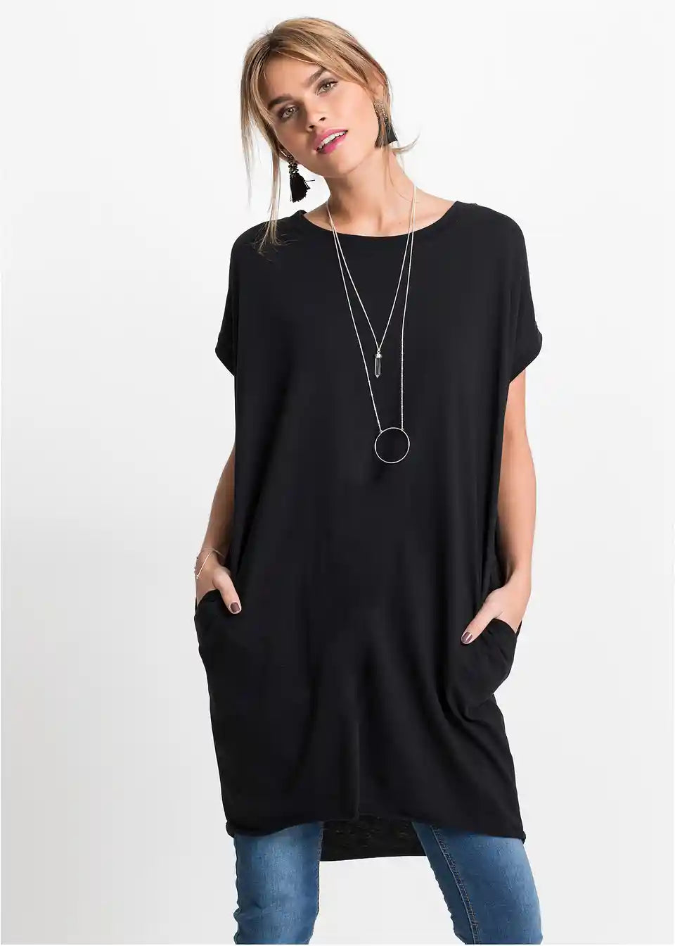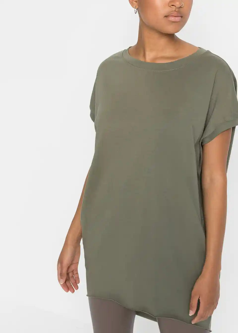 Ovaj fantastični Longshirt ima širok oversize kroj. Preklopljena ramena ističu ležerni stil. Rub modela s okruglim izrezom pada malo duže na stražnjoj strani. Bočni ušiveni džepovi savršeno zaokružuju izgled. Uske hlače poput Skinny traperica ili tajica i visoke cipele posebno dobro naglašavaju Longshirt.