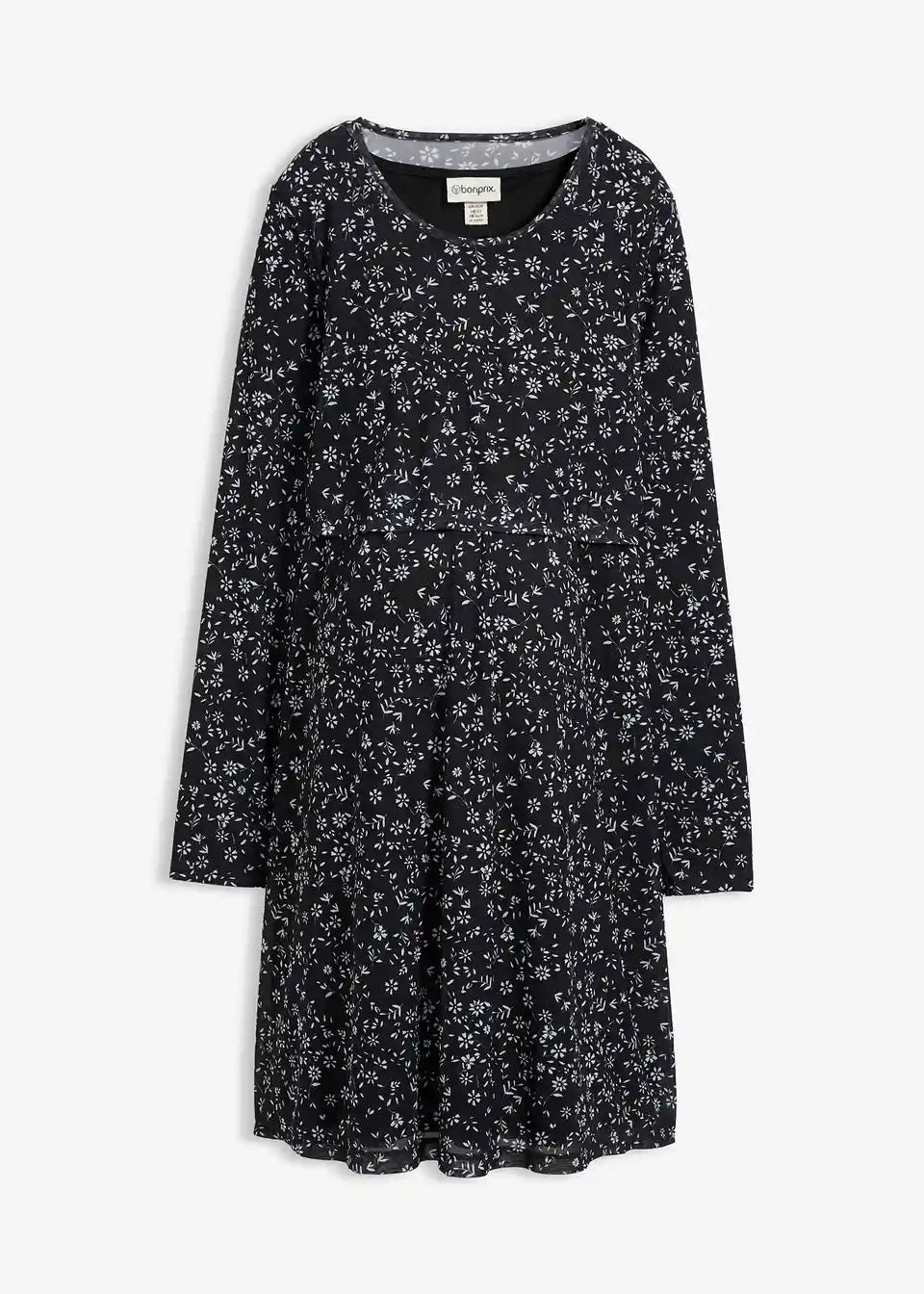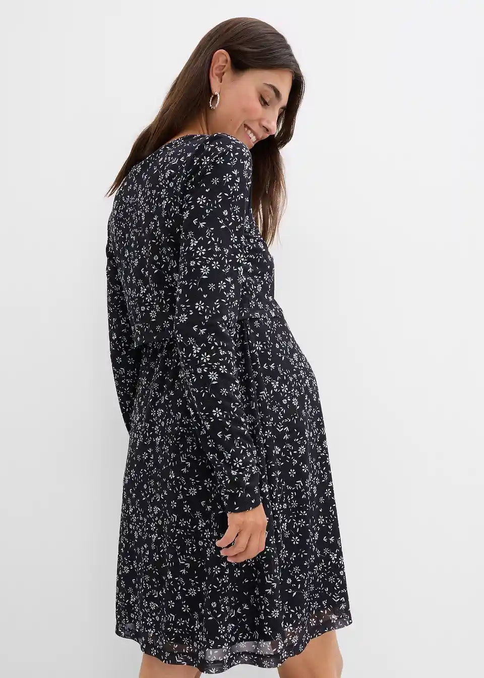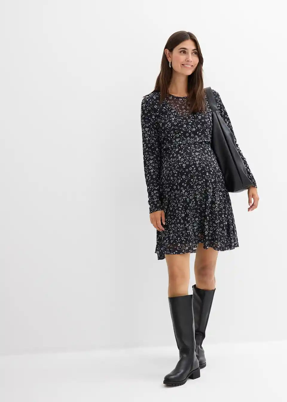 Ova haljina dugih rukava s cvjetnim motivom prati te sa stilom tijekom trudnoće i dojenja. Ležeran kroj, okrugli izrez i praktična funkcija za dojenje osiguravaju udobnost