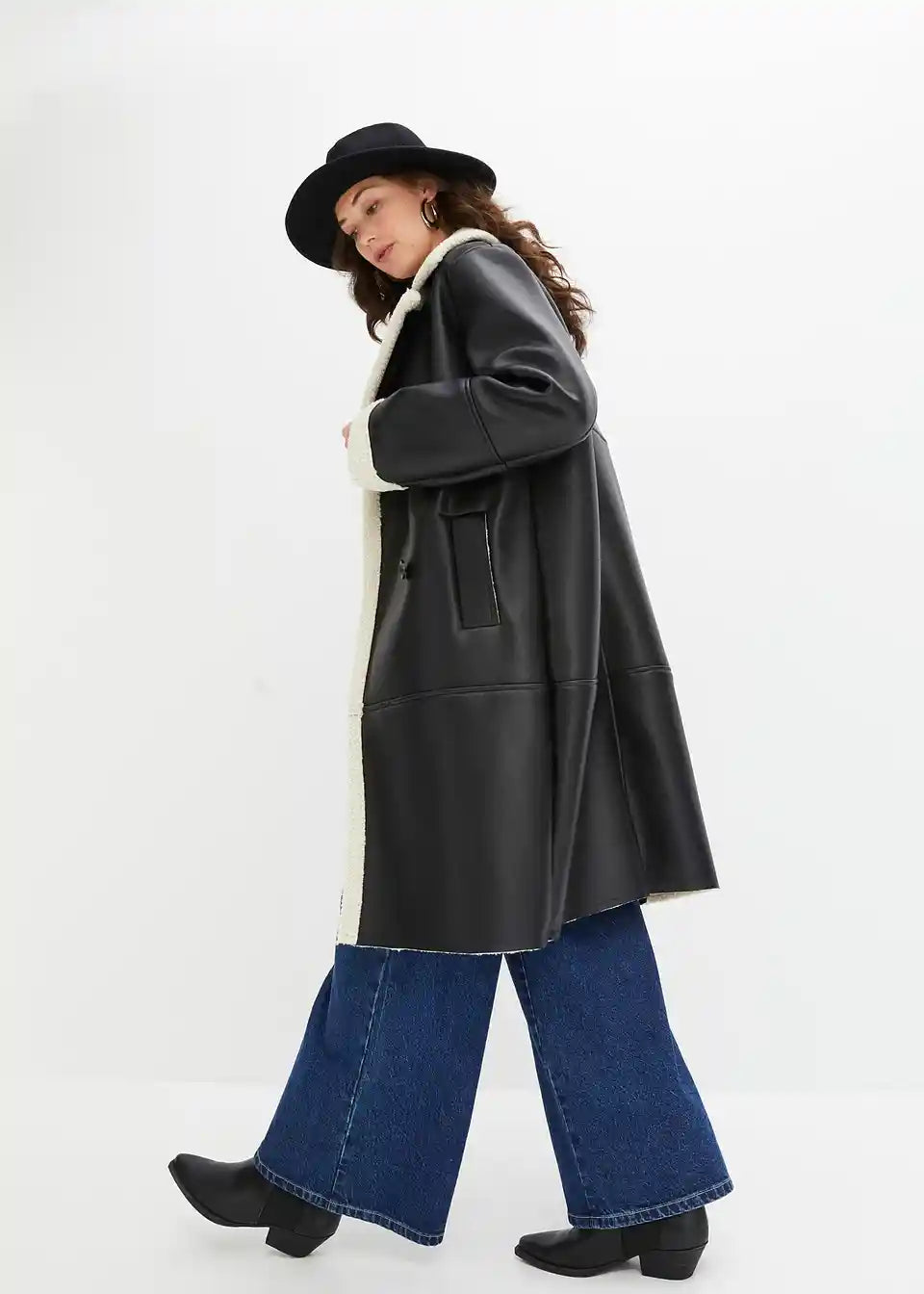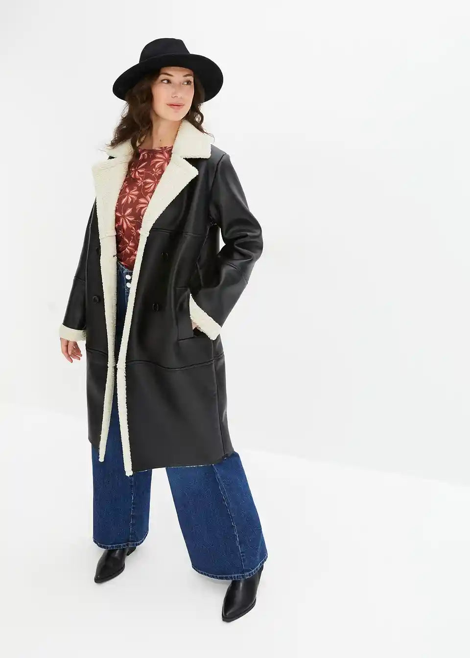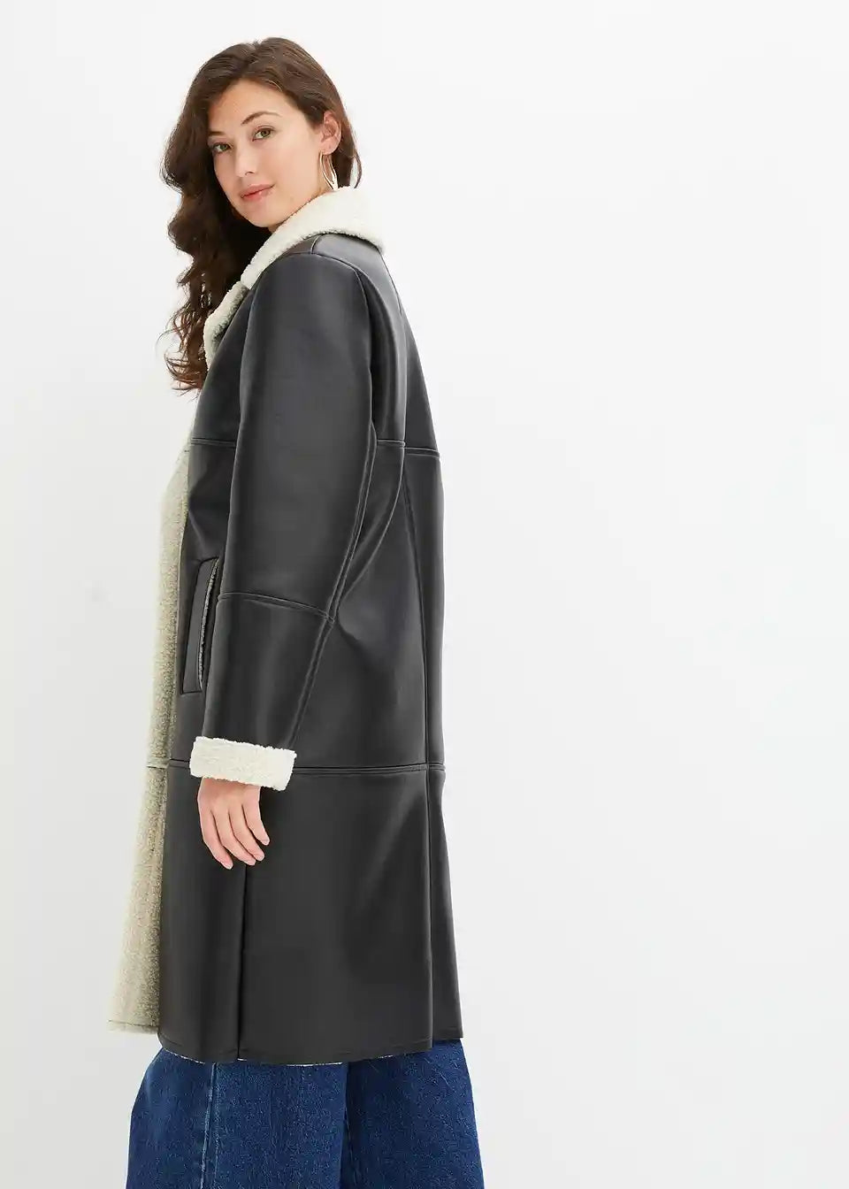 Moderan kaput s imitacijom janjeće kože