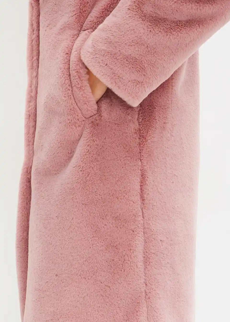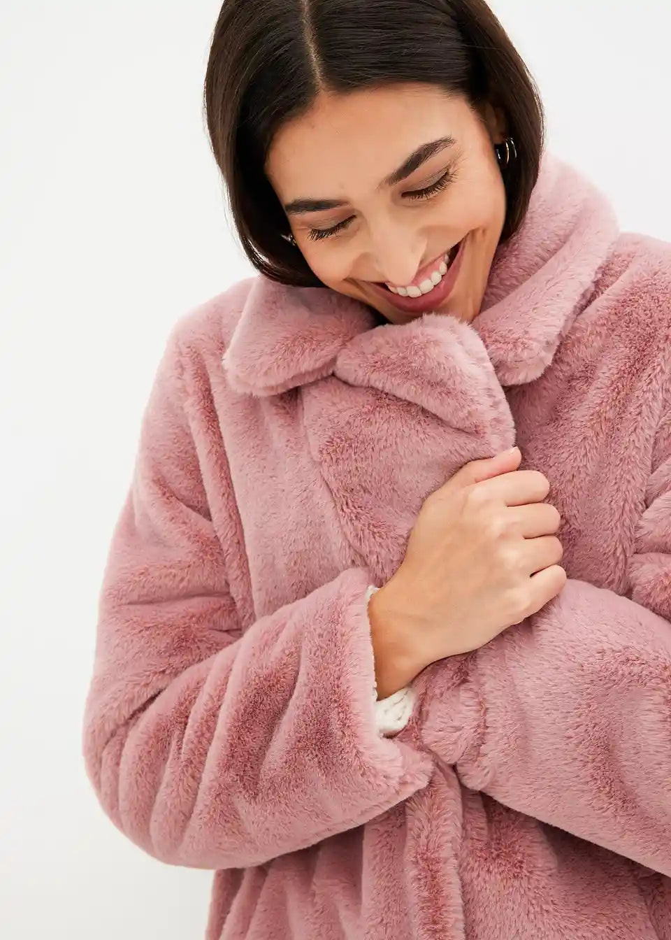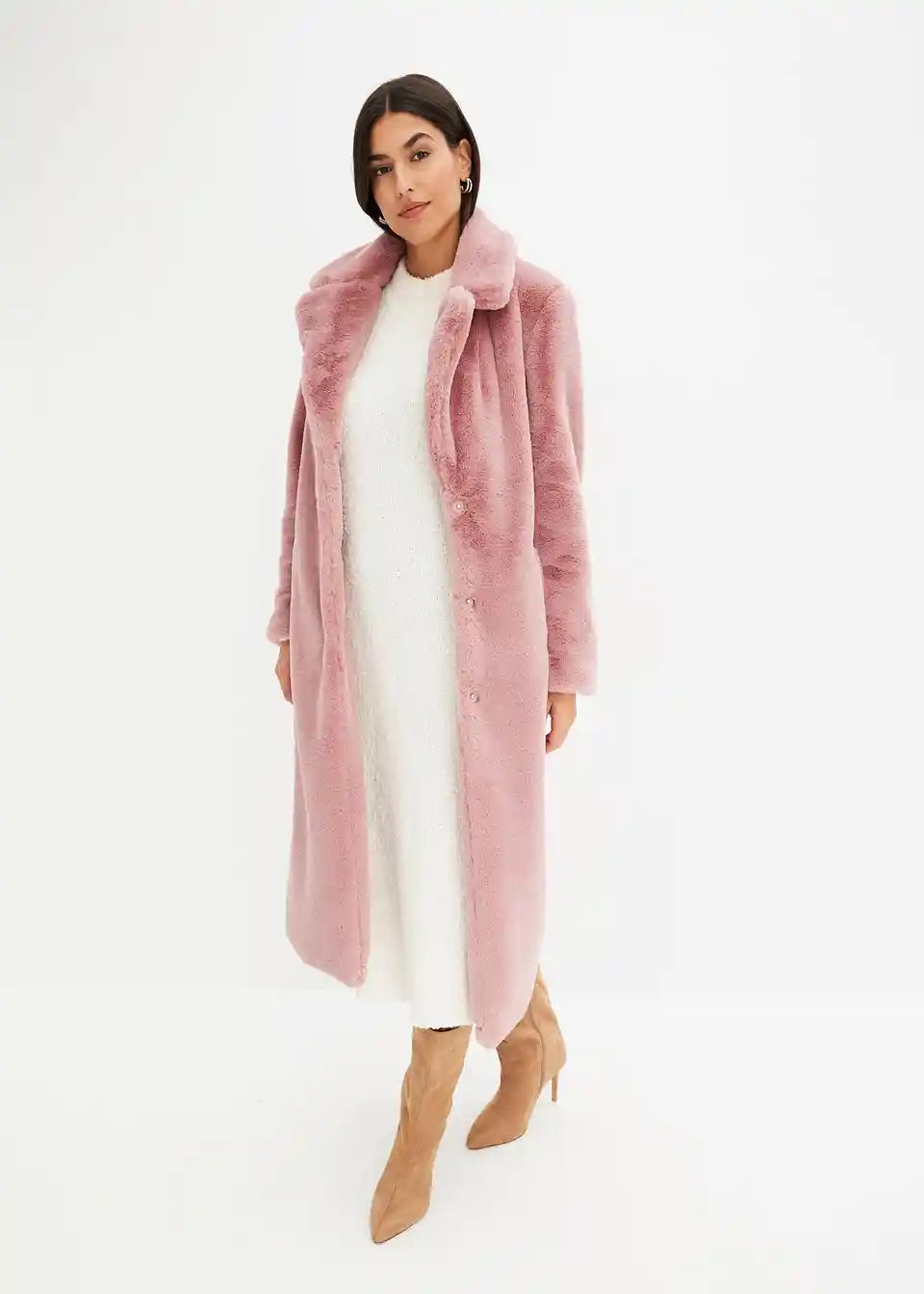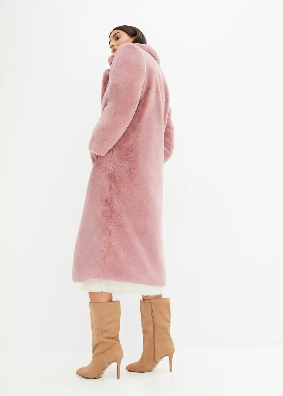 moderan kaput od umjetnog krzna s kopčanjem na drukere sprijeda