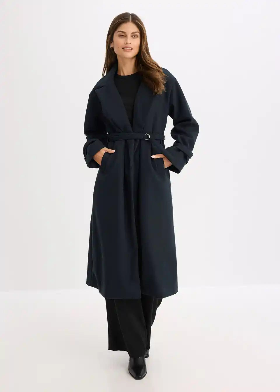 Oversized kaput s pojasom za vezanje i dvostrukom preklopnom trakom na rukavima