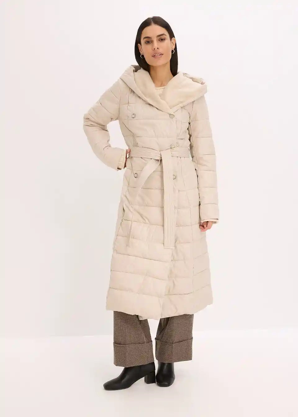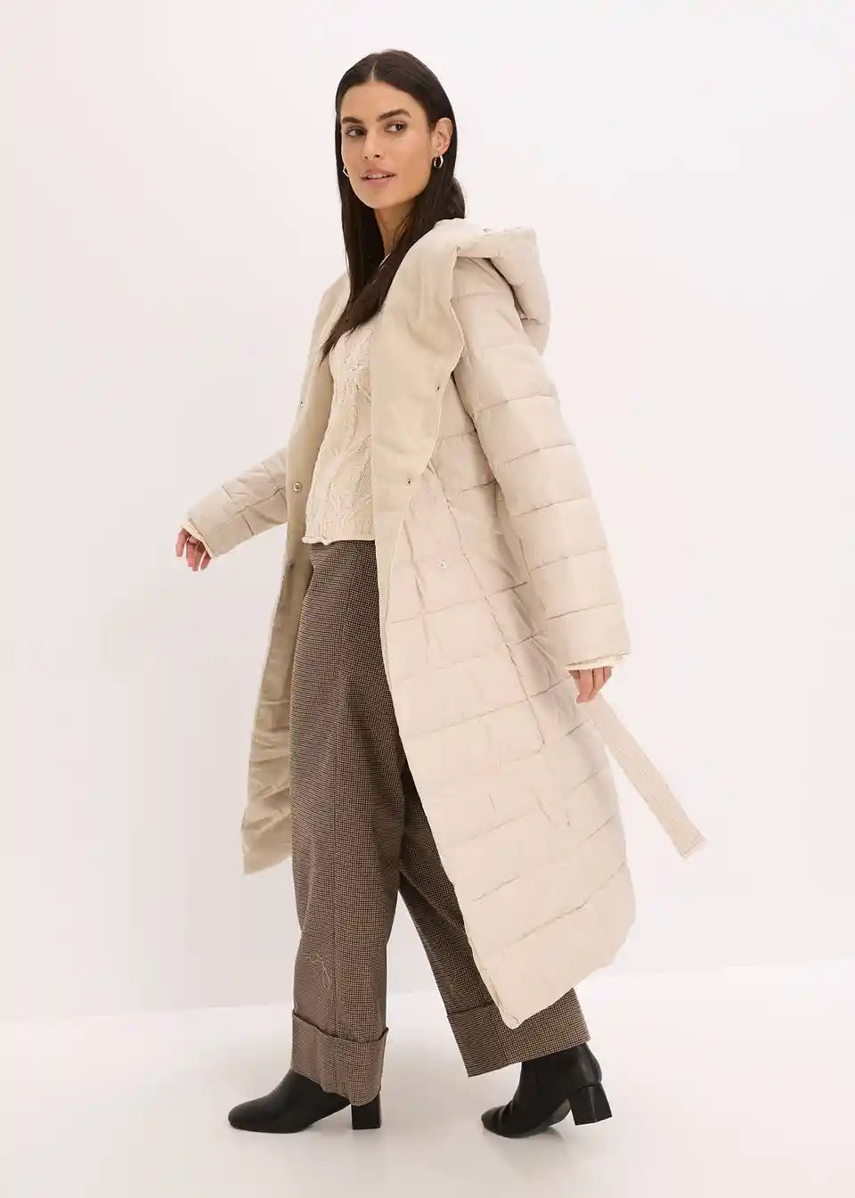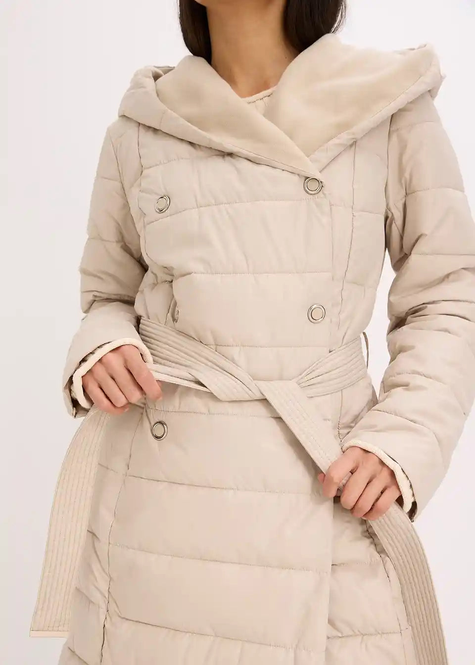 Vodootporni prošiveni kaput s dodatkom od imitacije vune i remenom za vezanje