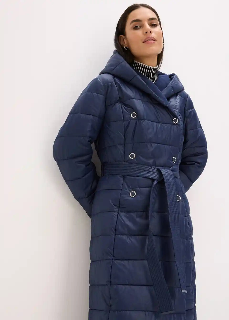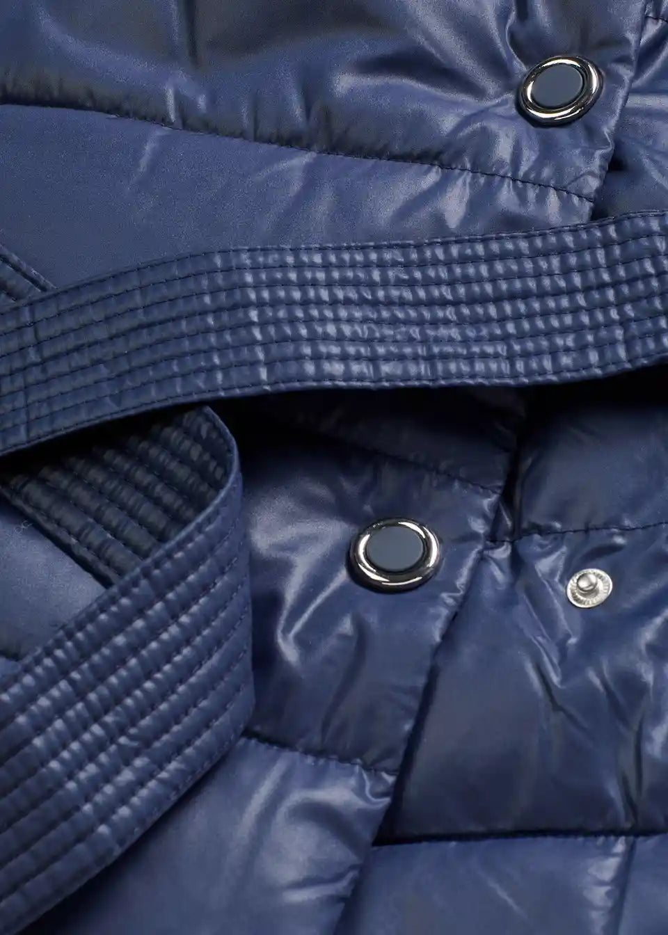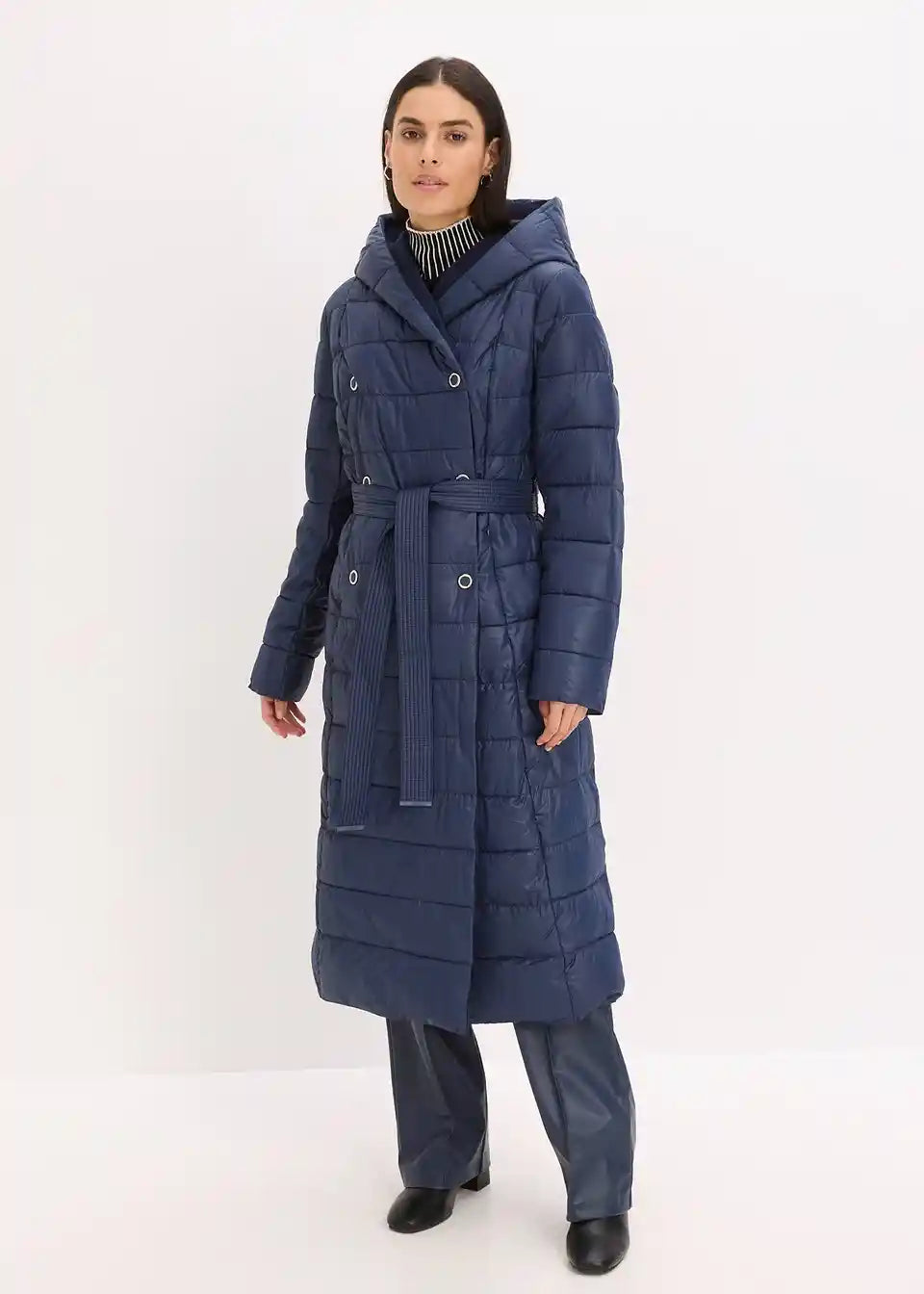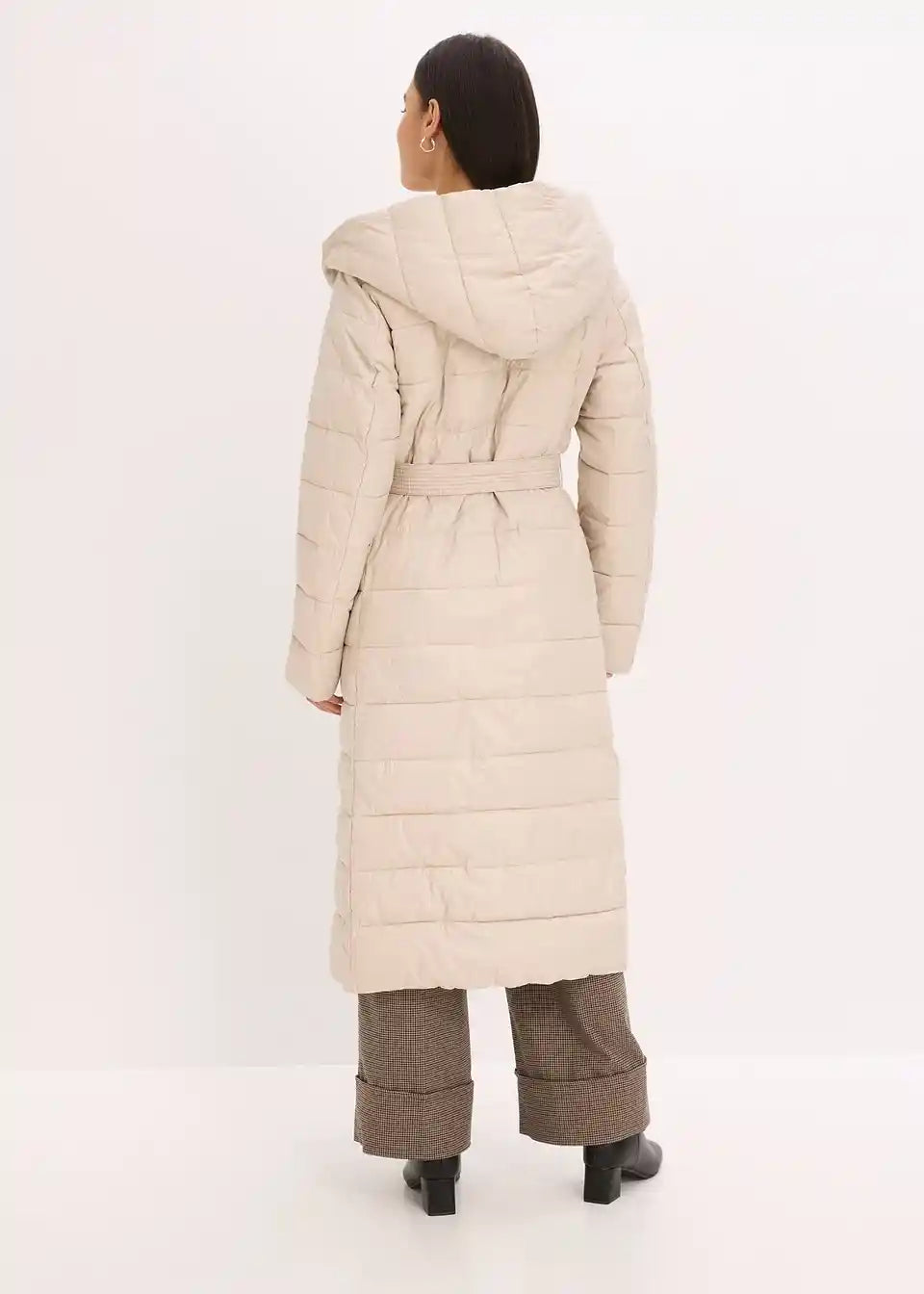 Vodootporni prošiveni kaput s dodatkom od imitacije vune i remenom za vezanje