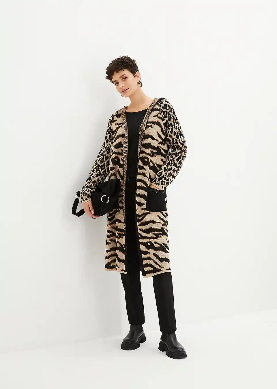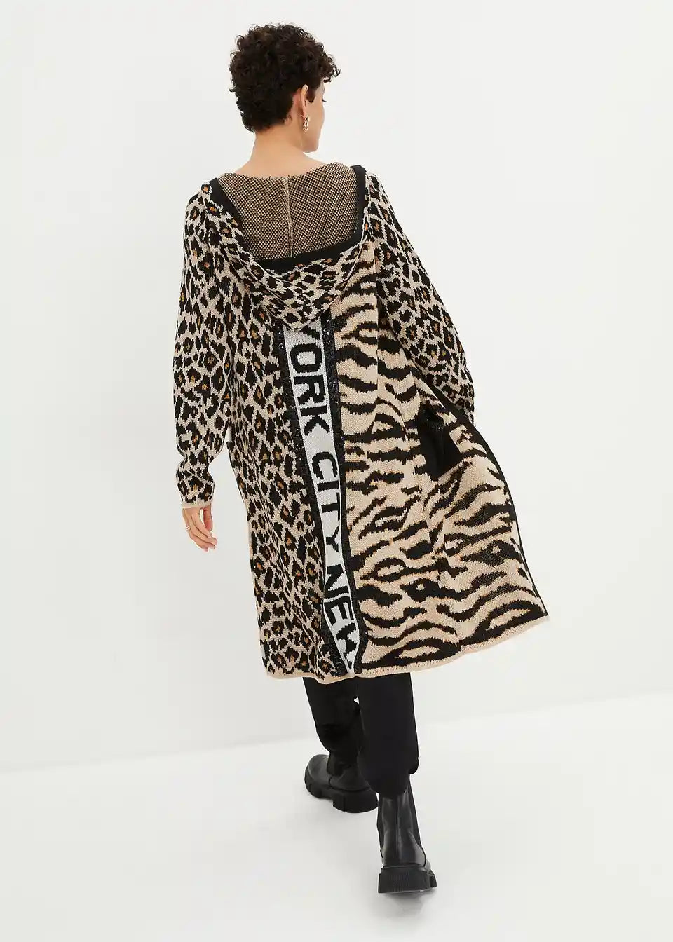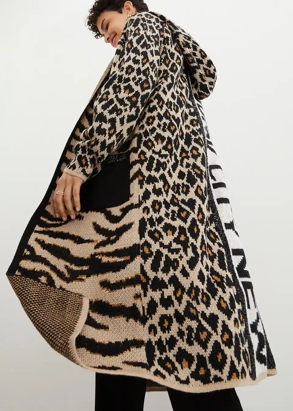 Moderan pleteni kaput s šljokicama i kapuljačom
