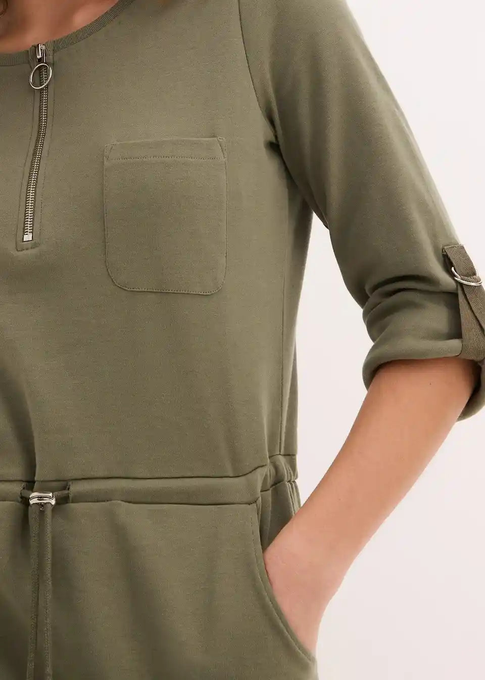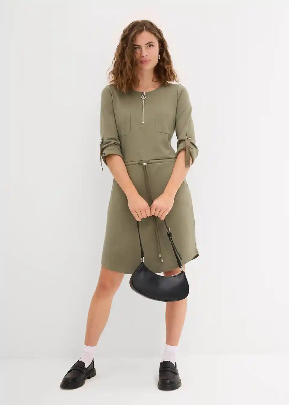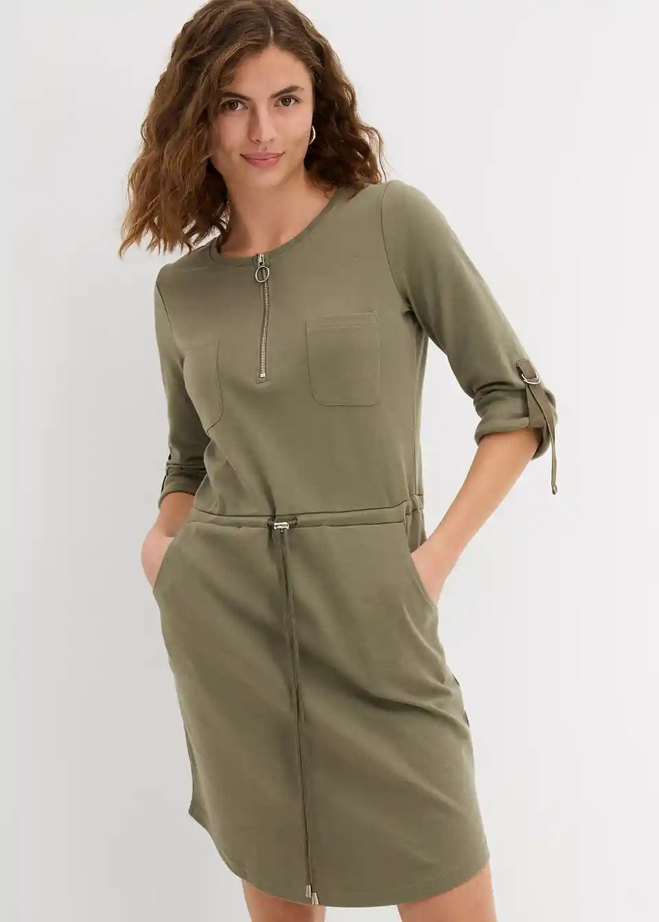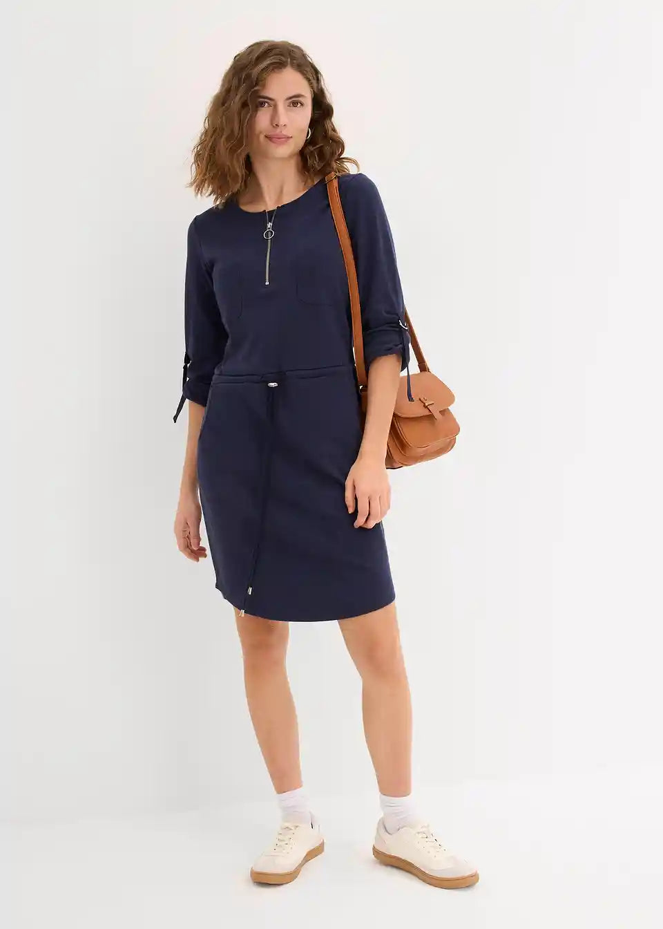 Haljina-košulja od pamuka koja naglašava struk s prilagodljivom dužinom rukava i džepovima