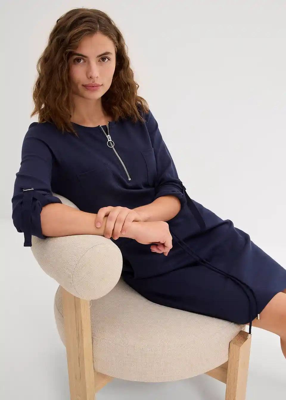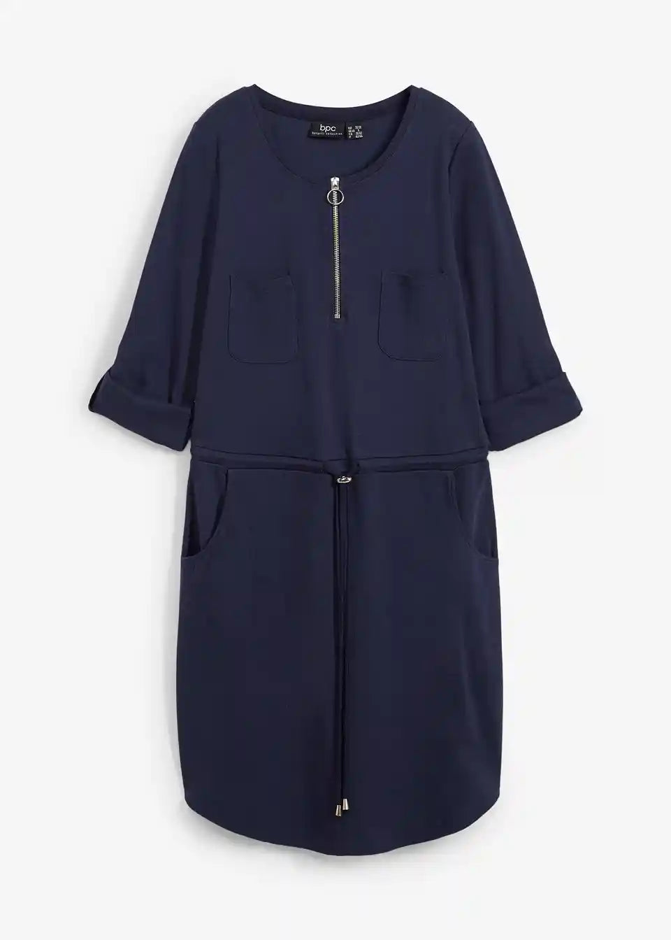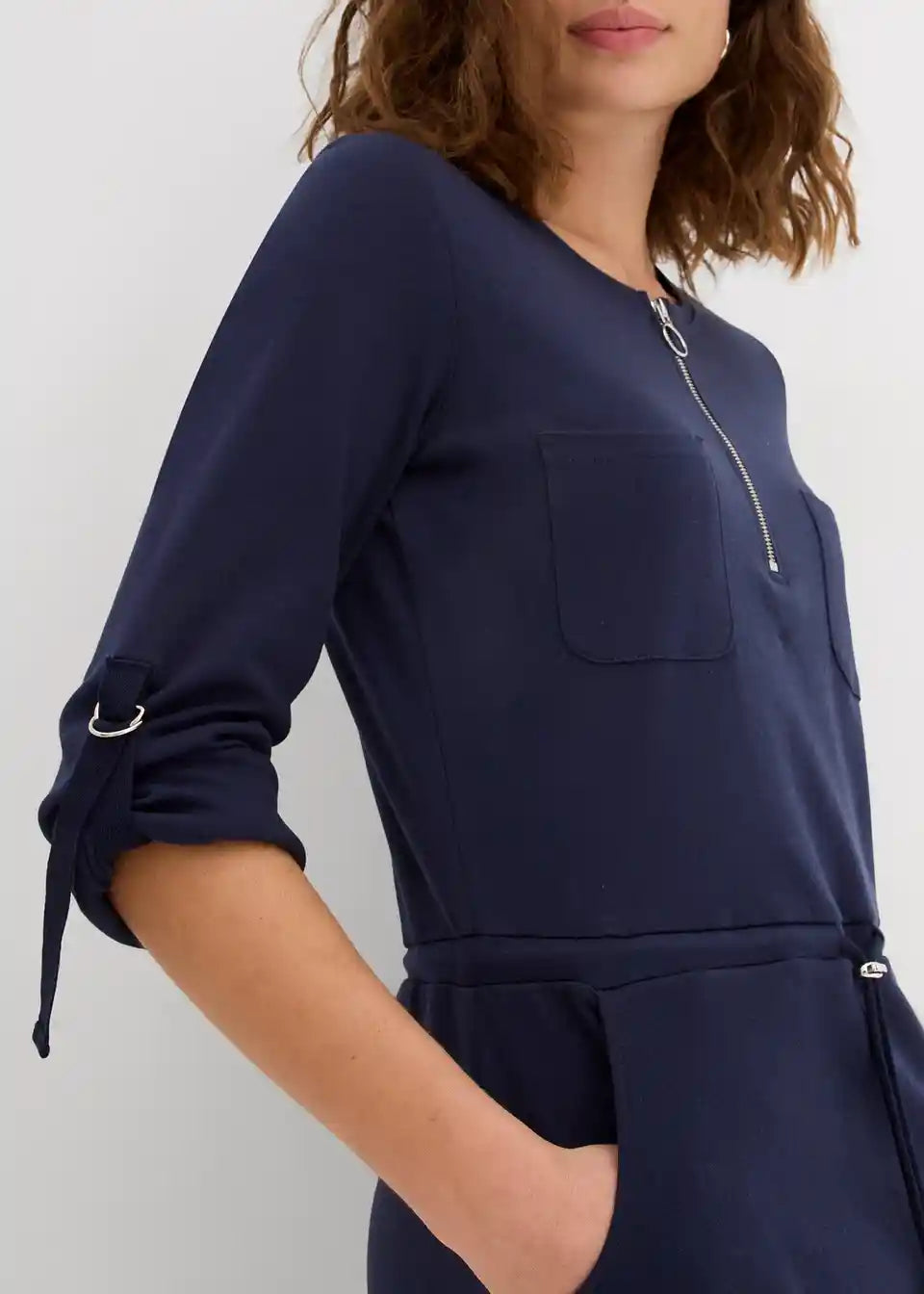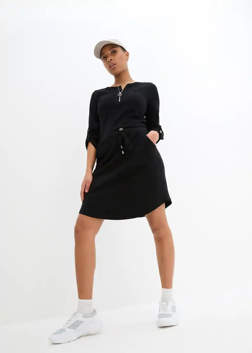 Haljina-košulja od pamuka koja naglašava struk s prilagodljivom dužinom rukava i džepovima