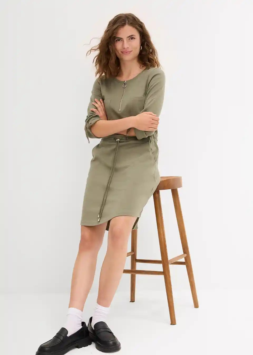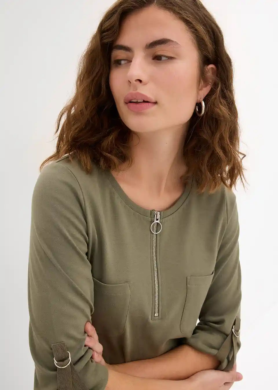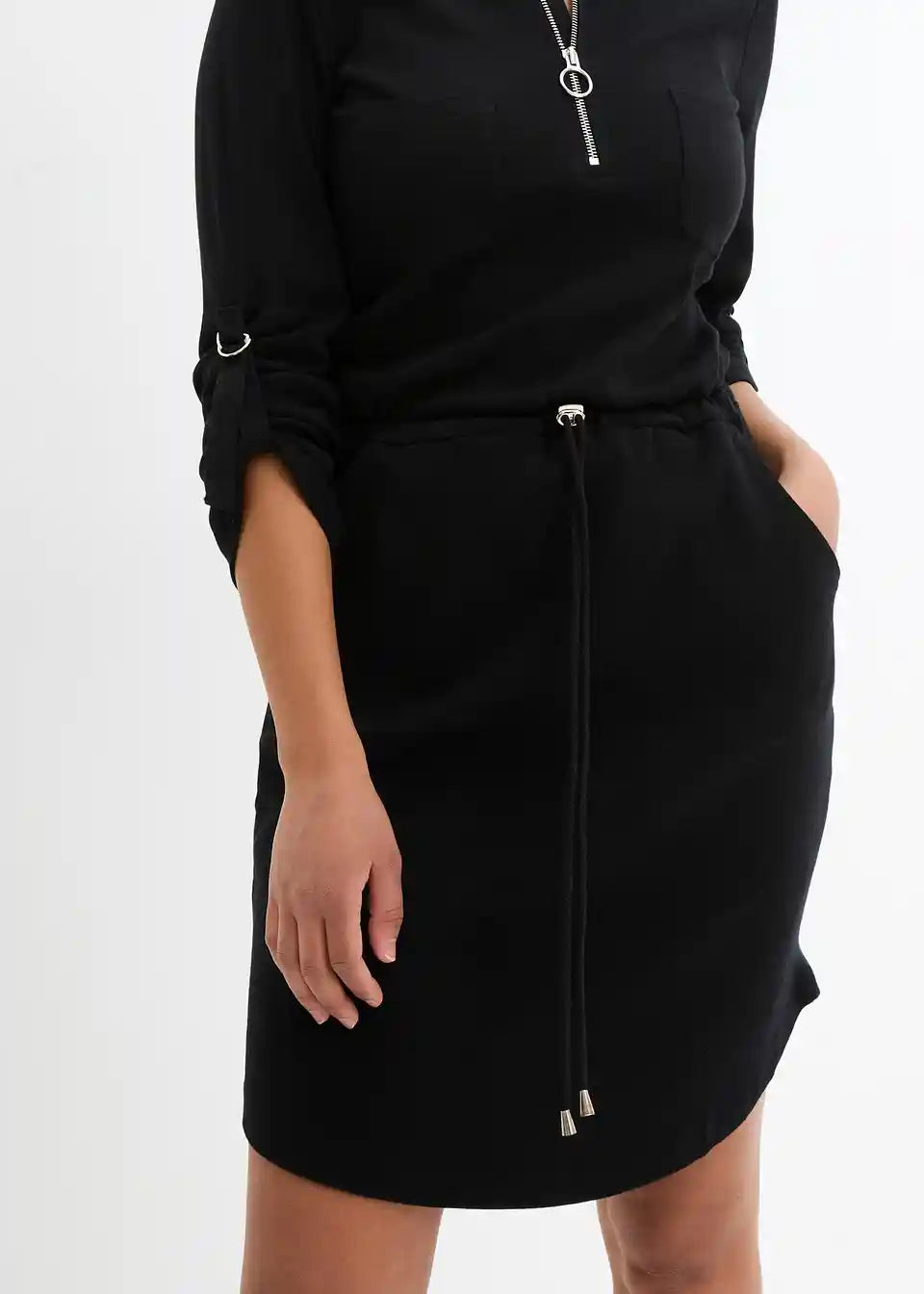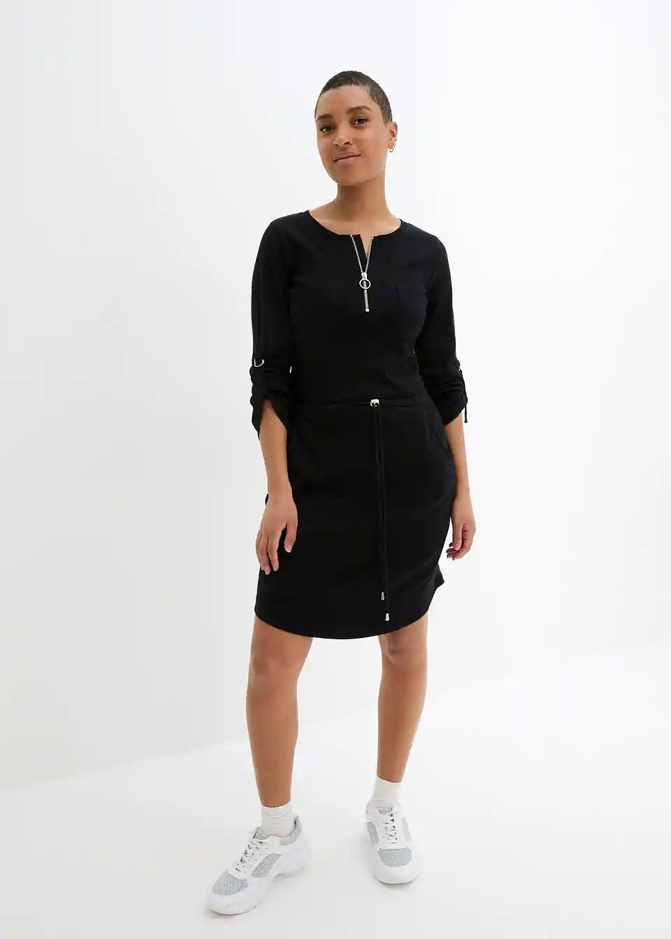 Haljina-košulja od pamuka koja naglašava struk s prilagodljivom dužinom rukava i džepovima