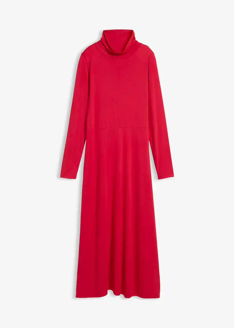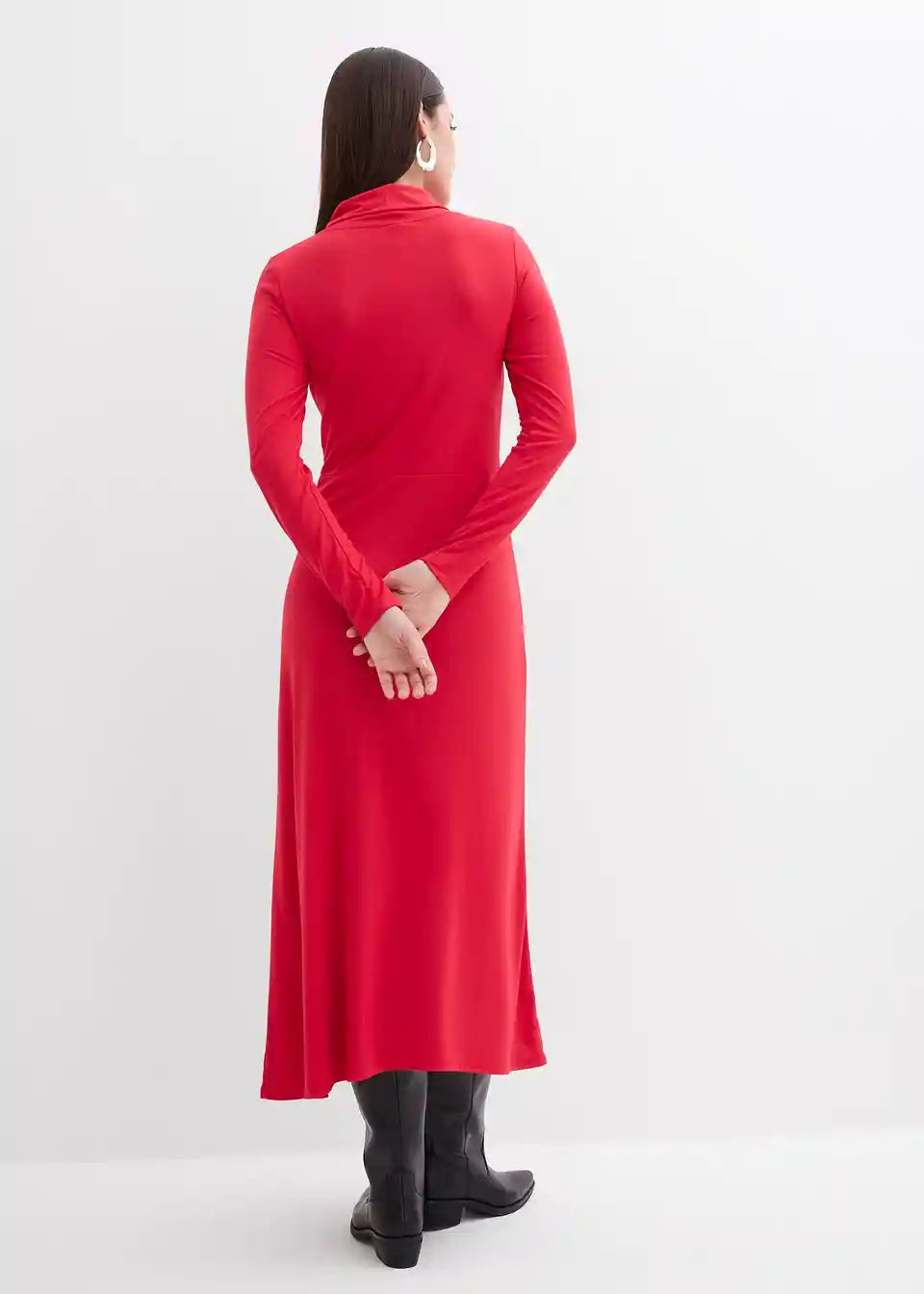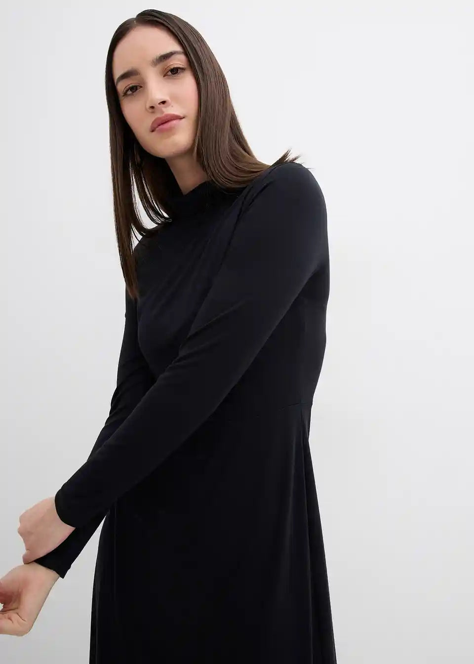 Strukirana jersey haljina s dolčevitom i prošivenim krojnim šavom u visini struka