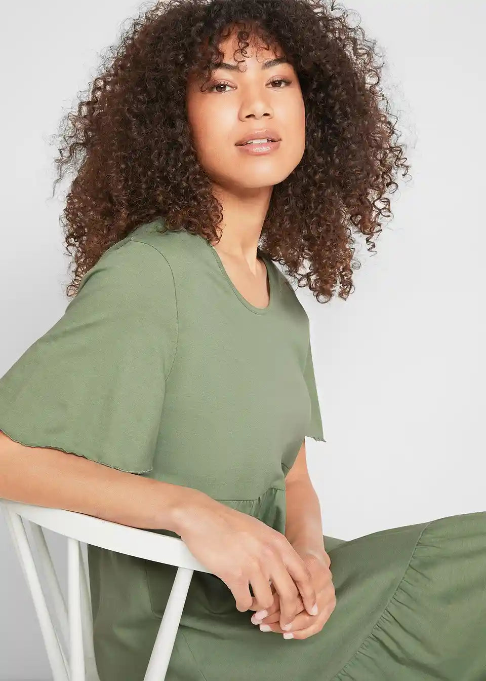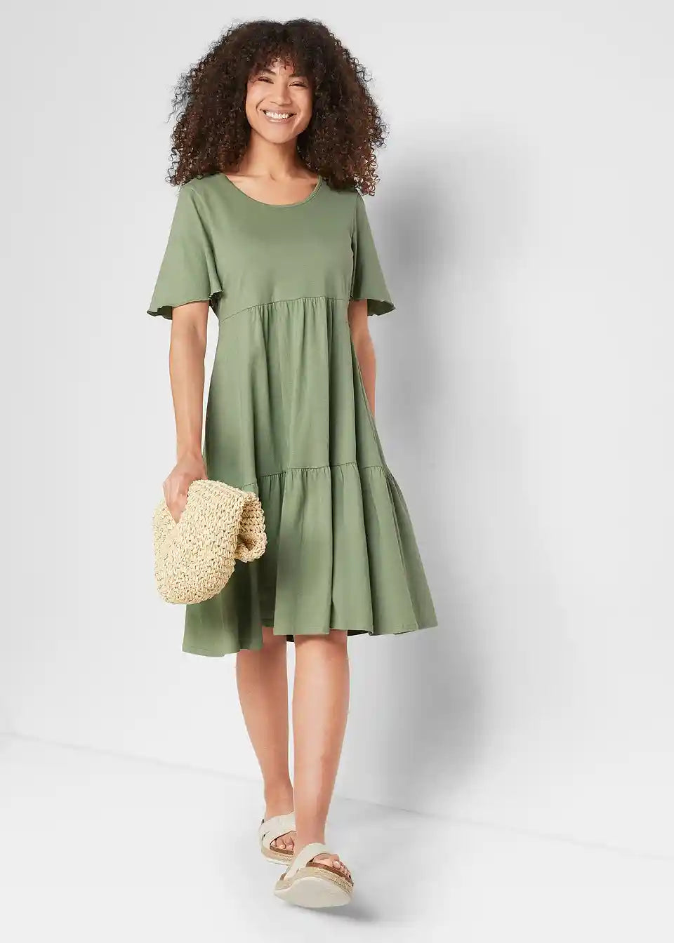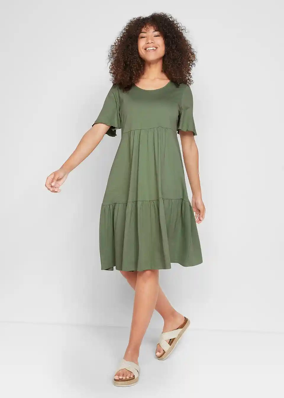 Jednostavna haljina s panelima A-kroja i V-izrezom od pamuka