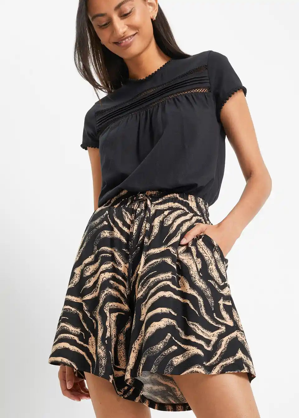 Široke kratke hlače od jerseya s viskozom i visokim komotnim strukom