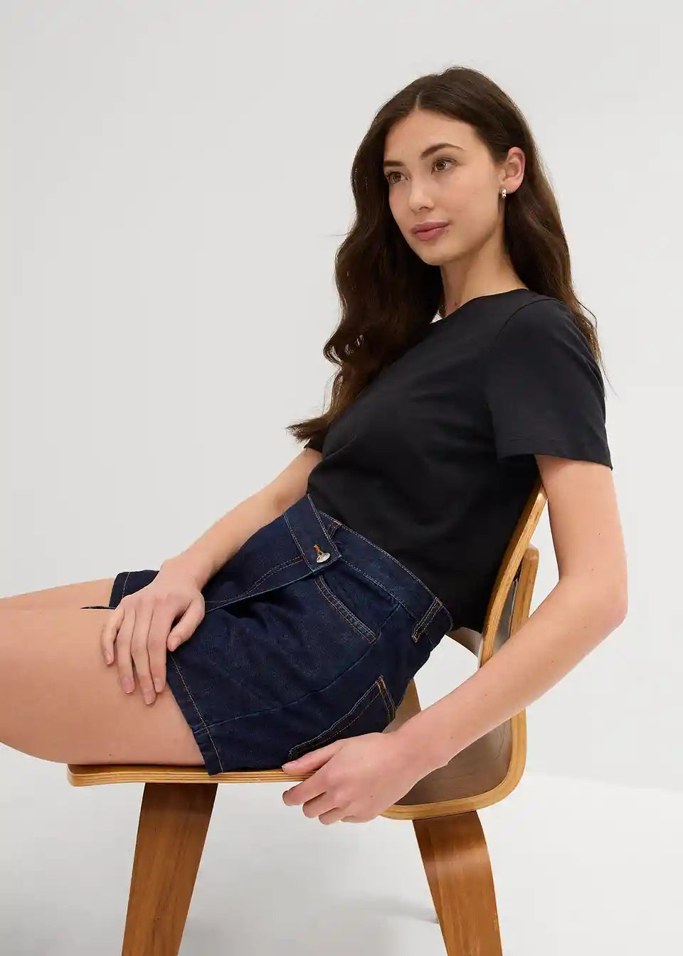 Traper Hosenrock s izgledom preklopa od laganog low stretch trapera. Duljina u veličini 42 cca 8,5 cm, periv u perilici.