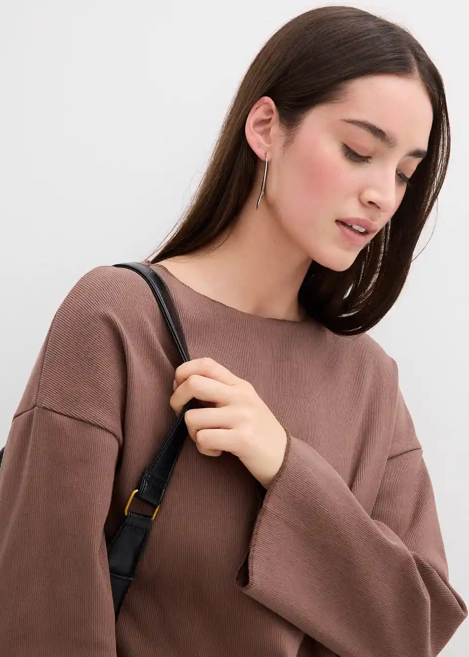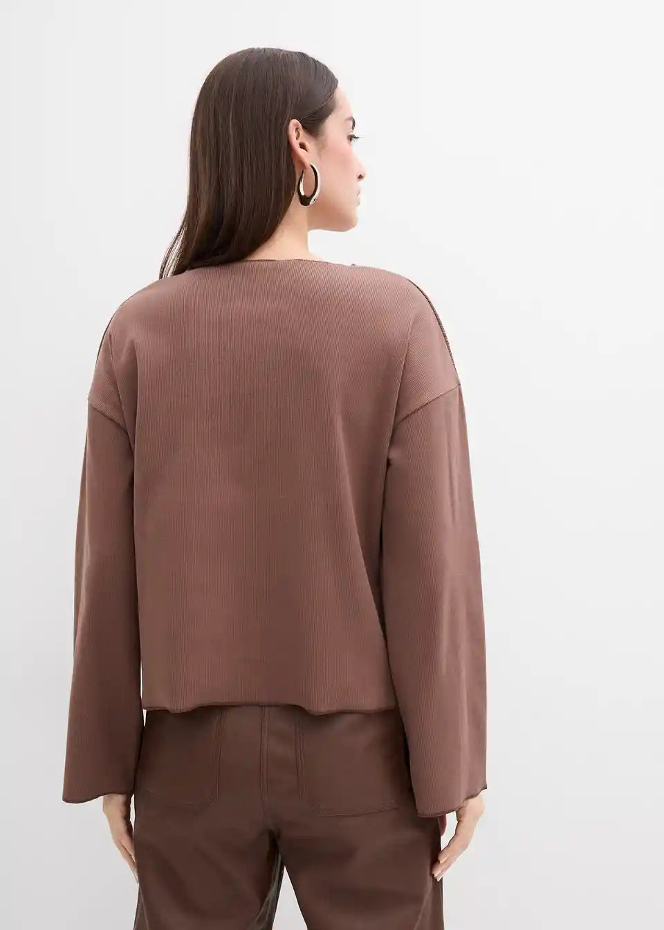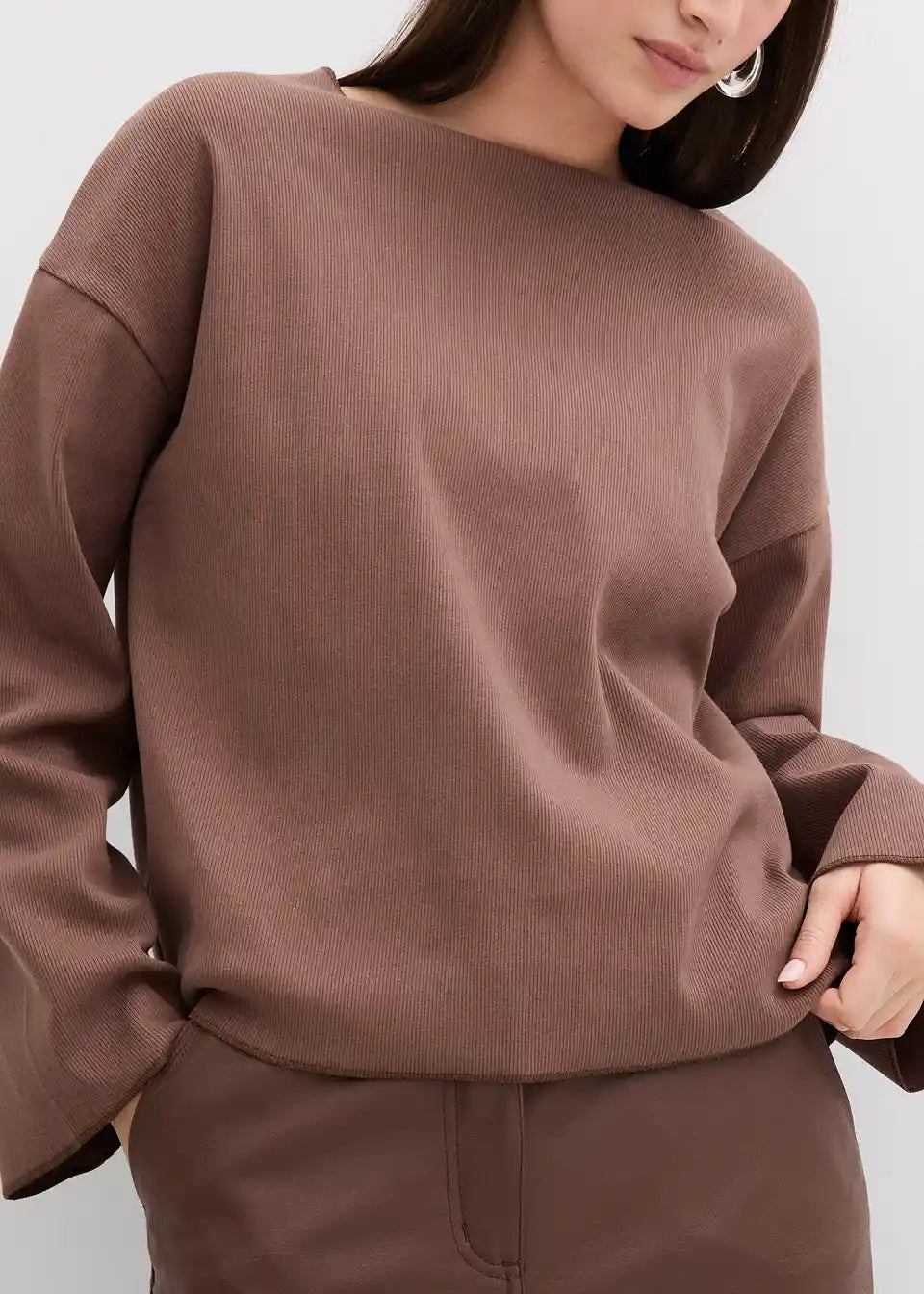 Rebrasta majica s lađa izrezom i dugim rukavima