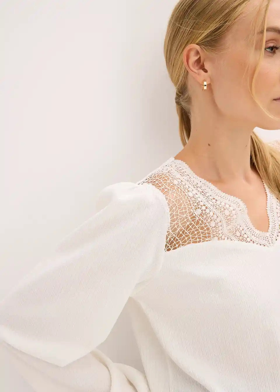Moderna majica s visokokvalitetnom čipkom i trendi balon rukavima