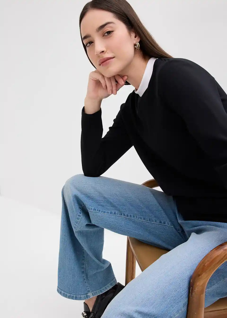Majica s dugim rukavima od materijala s udjelom viskoze s dolčevita ovratnikom kontrastne boje