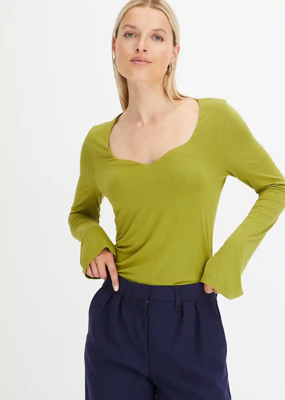 Moderna majica s dugim rukavima i srcolikim izrezom