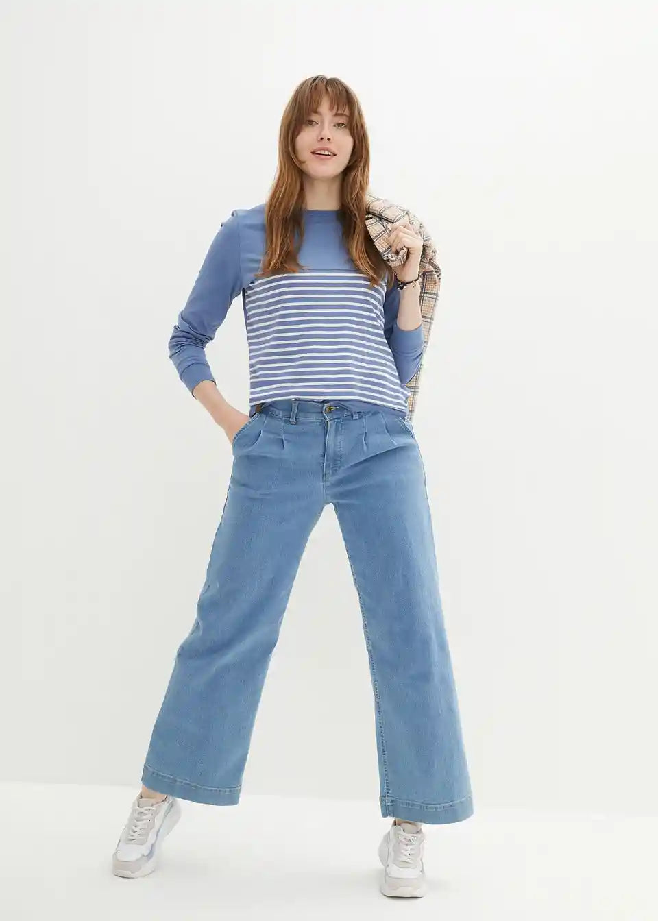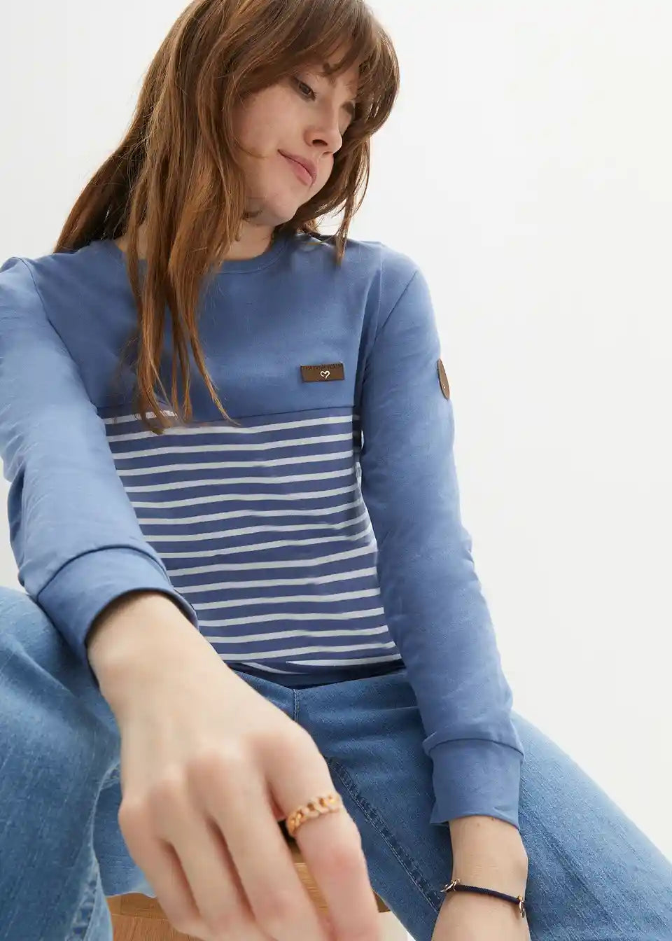 Udobna majica s dugim rukavima s prugama i detaljima od imitacije kože