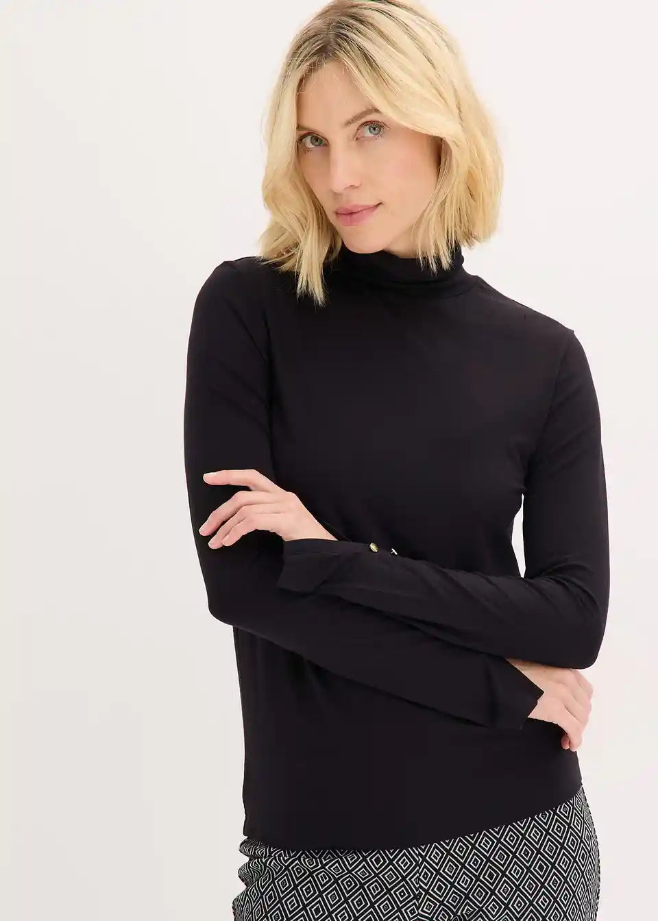bezvremenski pulover s visokim ovratnikom i dekorativnim gumbima