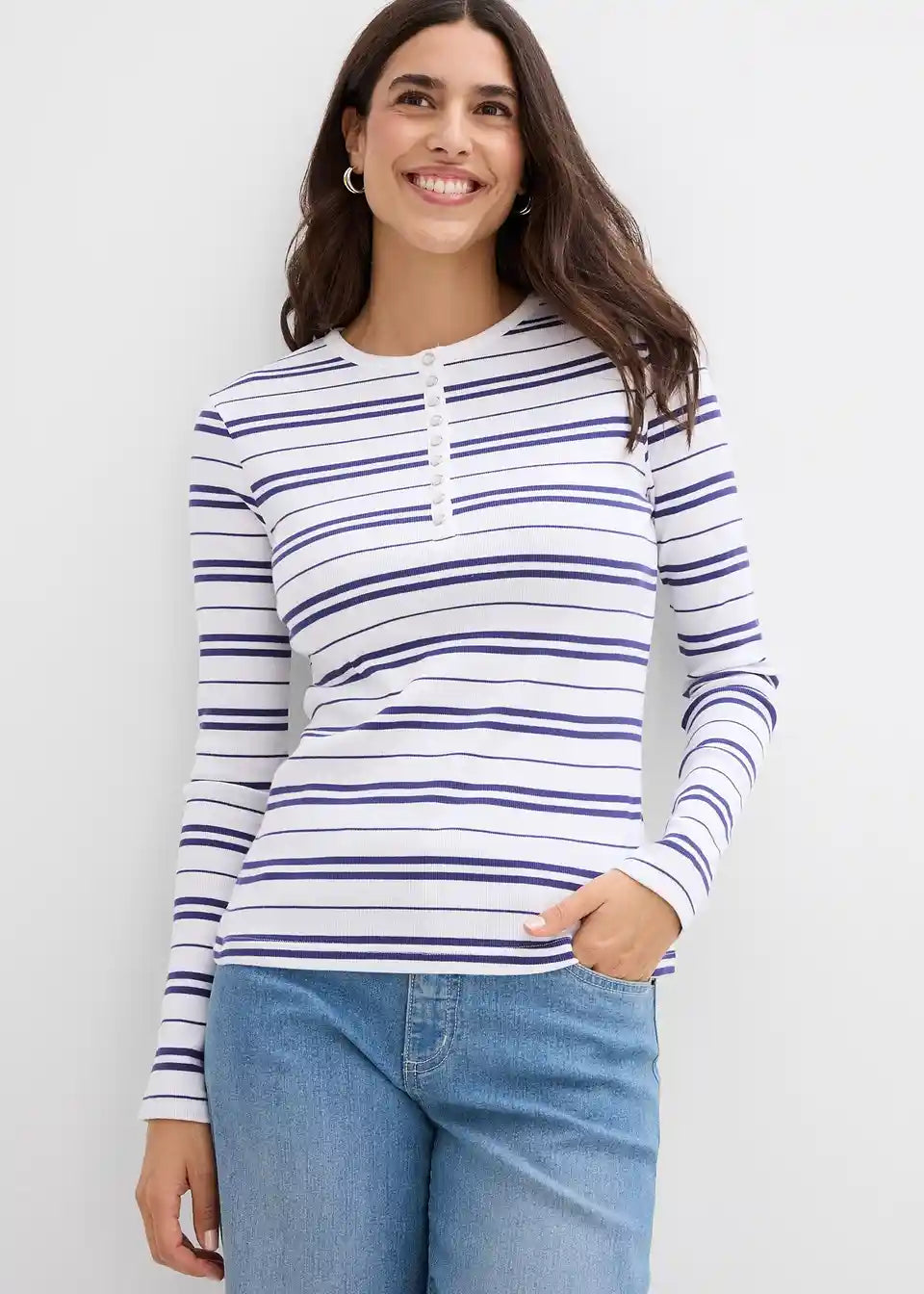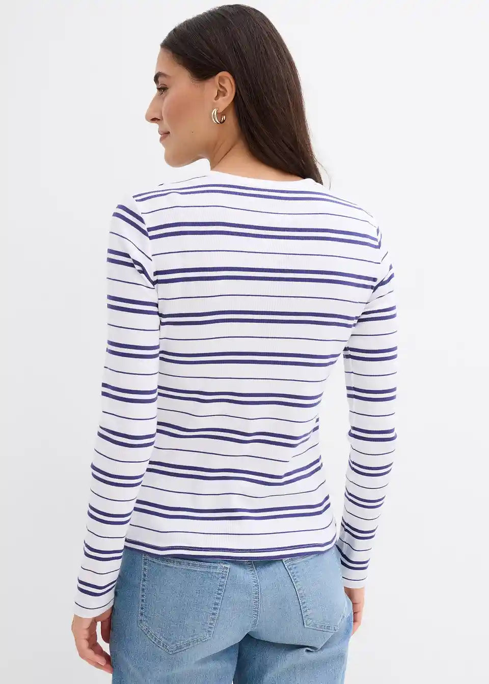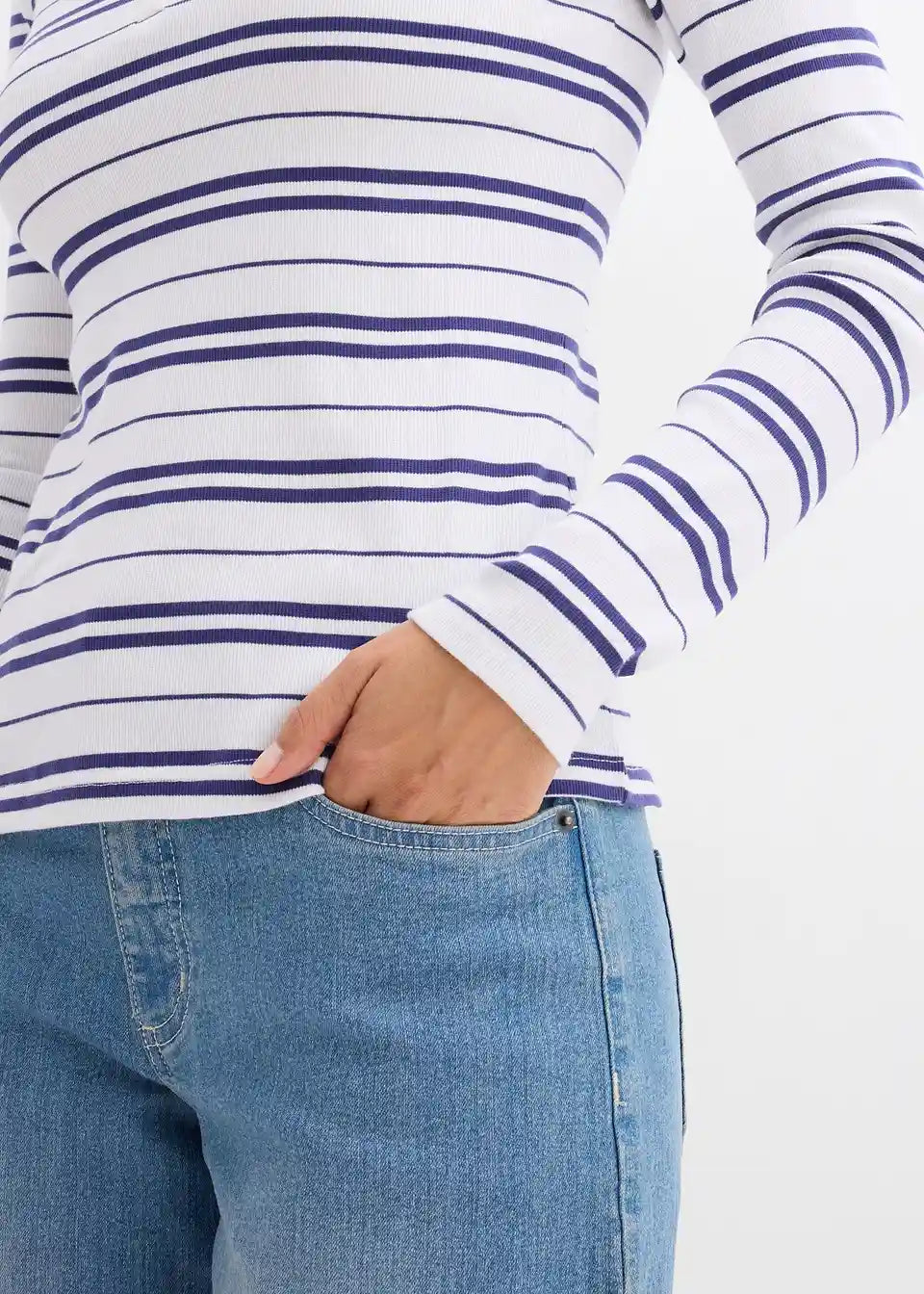 Rebrasta majica s dugim rukavima od materijala s udjelom organskog pamuka